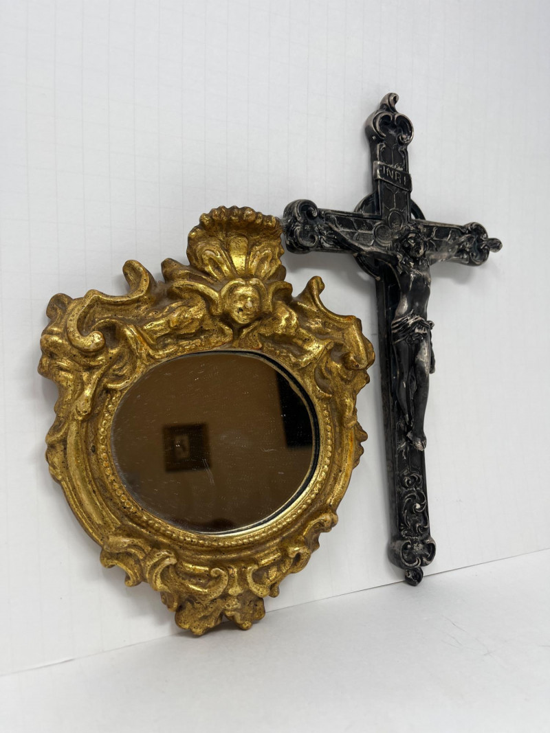 Lot # 111 - Vintage Catholic Crucifix & Gilt Wall Mirror