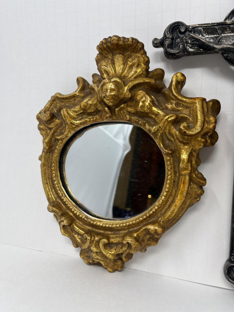 Vintage Catholic Crucifix & Gilt Wall Mirror Crucifix 12" Metal Gilted Mirror "8H