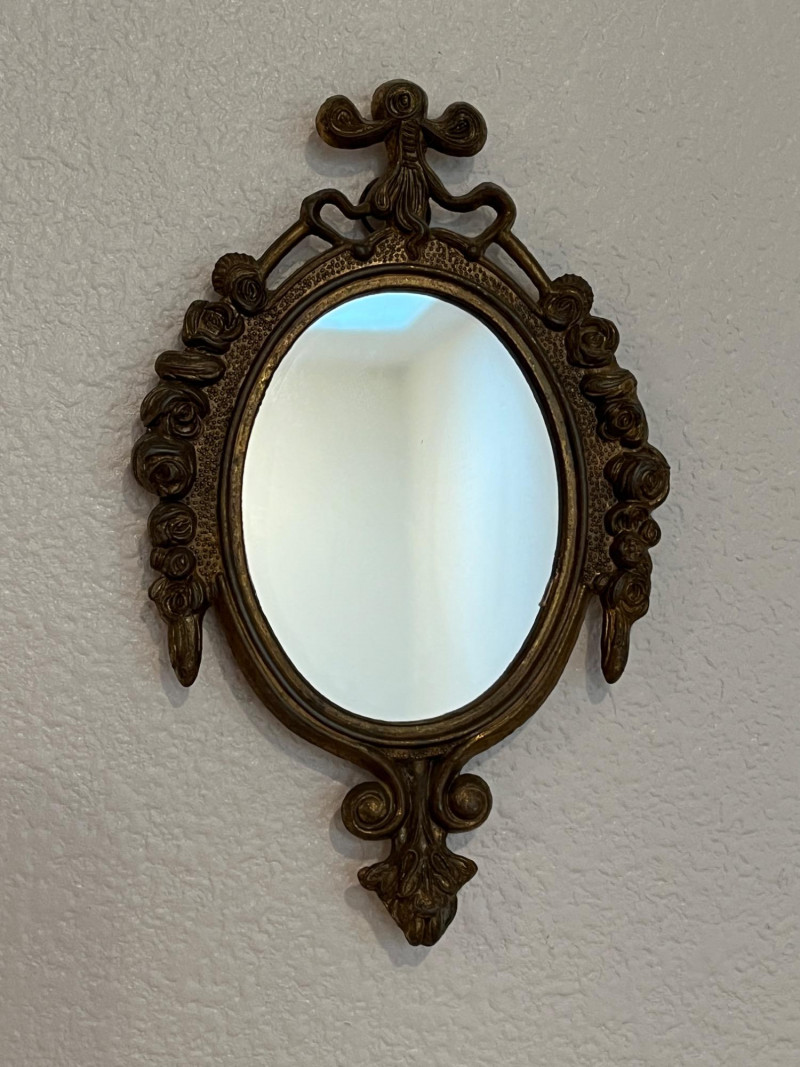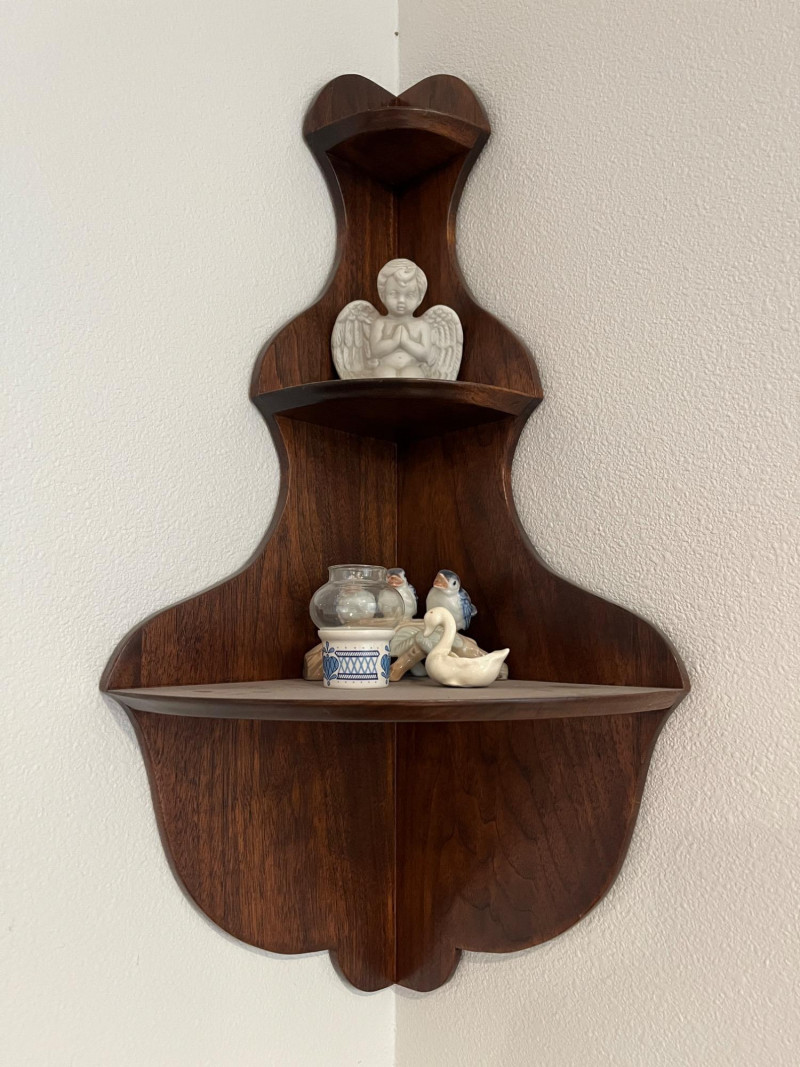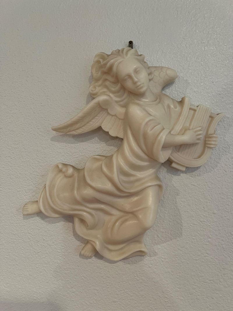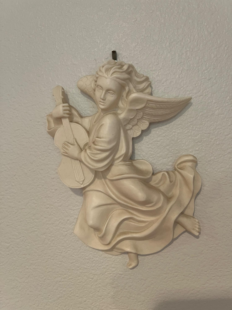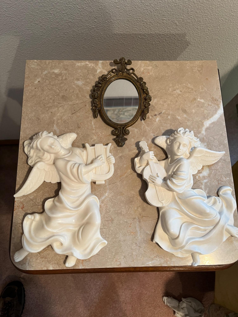 Angels, Small Mirror, Corner Curio Shelf, Framed Art Lot Includes: 2 Vintage Angel Wall Decor Pieces 8"L 26" Corner Curio Wall Cabinet Victorian Picture Print Framed 12 x 16 Vintage Metal Mirror
