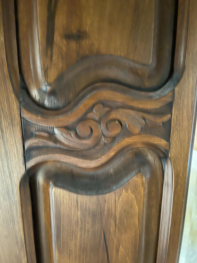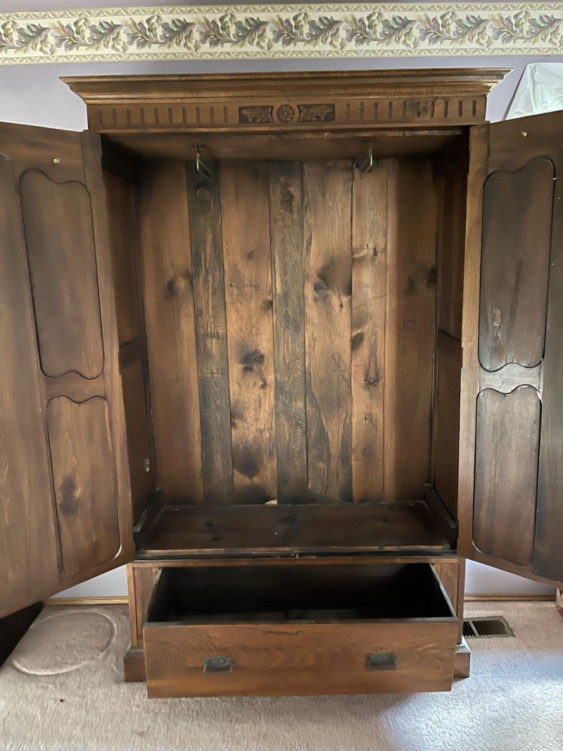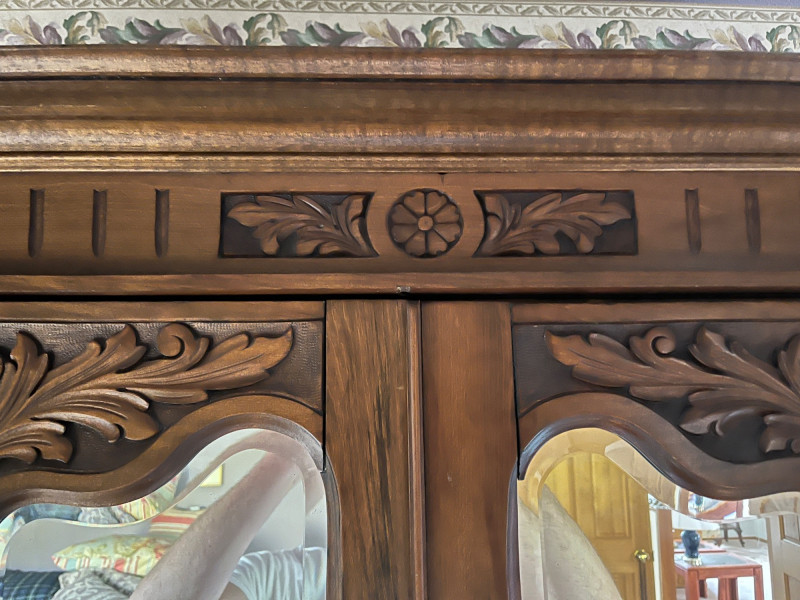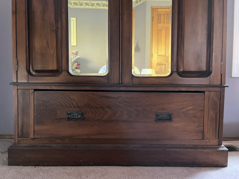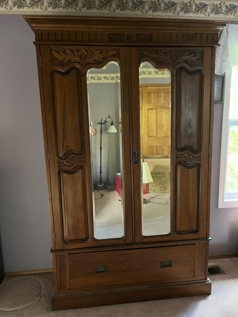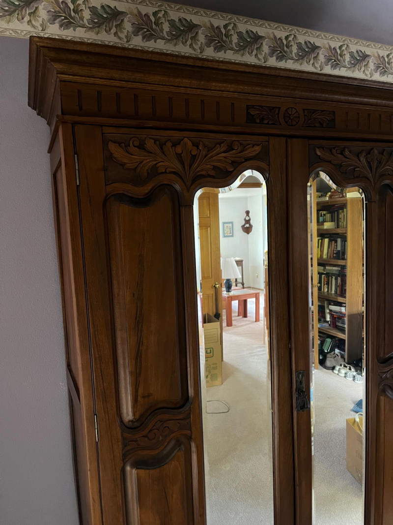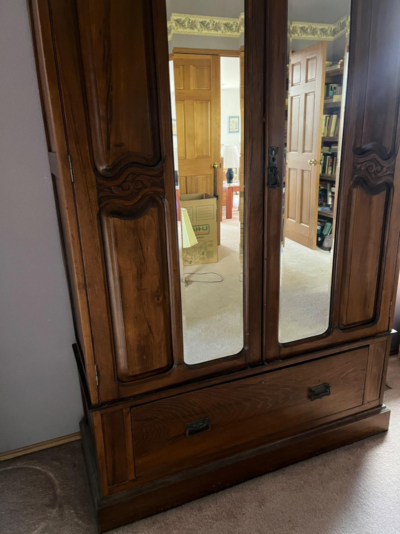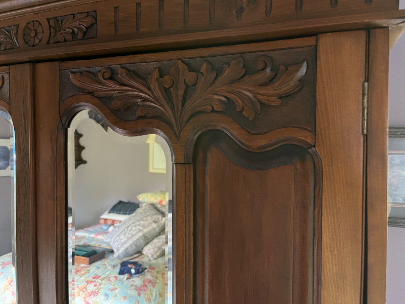 Antique Wooden Armoire w/ Mirrored Doors Gorgeous Detailing Piece Is On Second Story of House 77 x 50 x 17