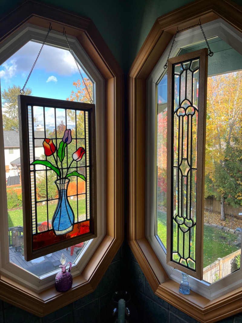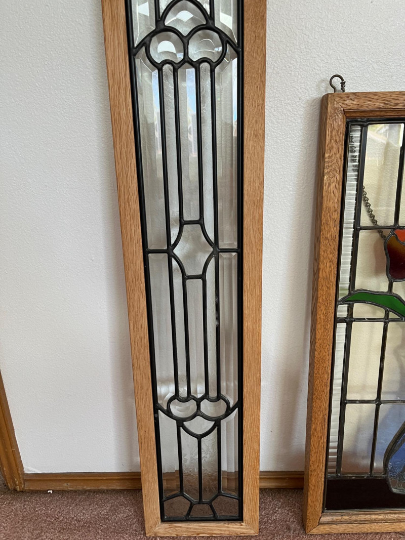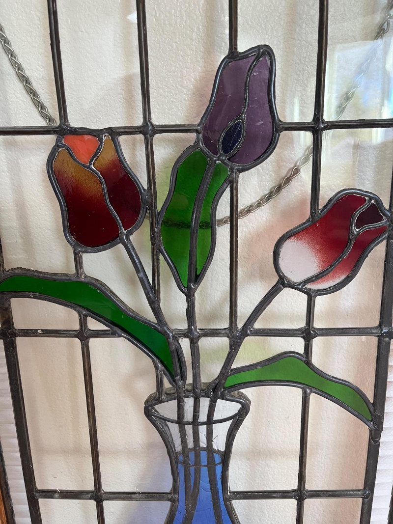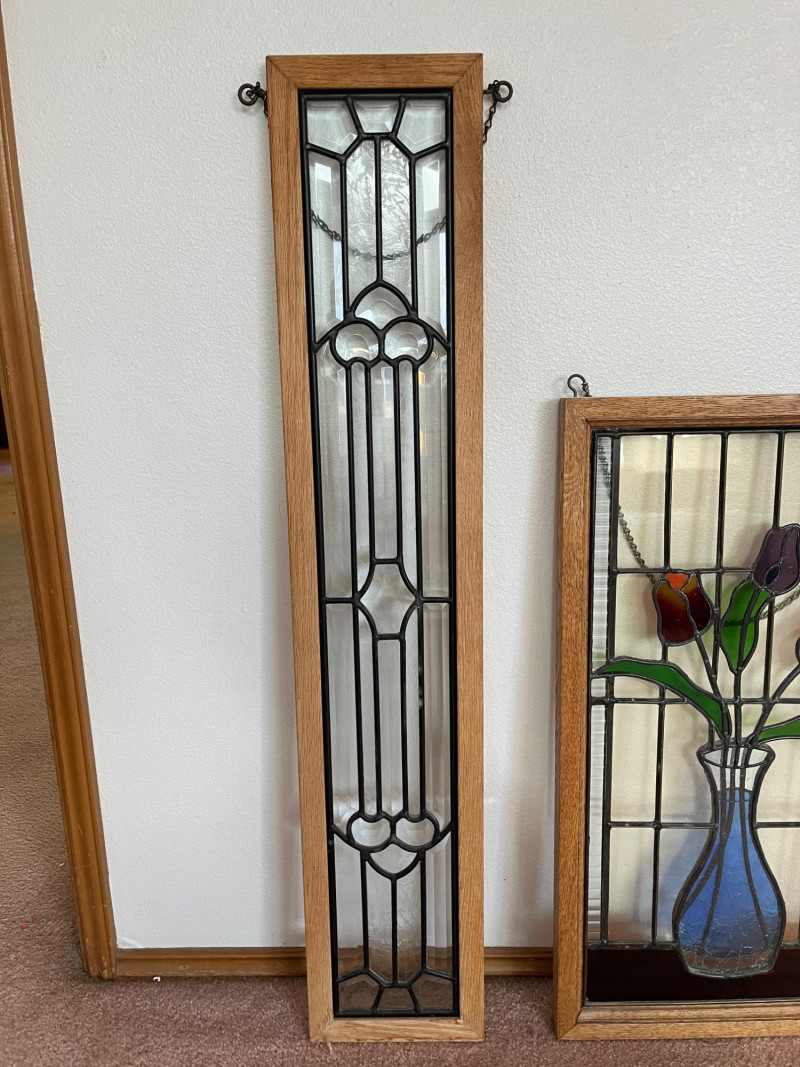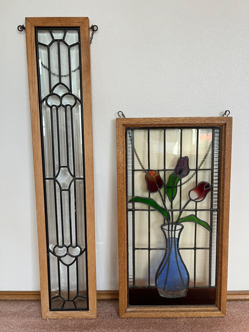 Two Gorgeous Stained Glass Panels 37 x 7 14 x 16 (Floral) Fantastic Condition!!