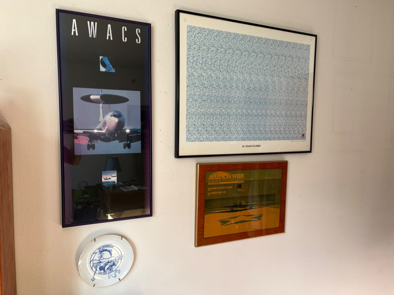Aereospace Memorabilia (4 PCS) 1 Collectors Plate, B2 Bomber Print 22 x 28, AWACS Print 28 x 12, Aviation Week Placque 19 x 14