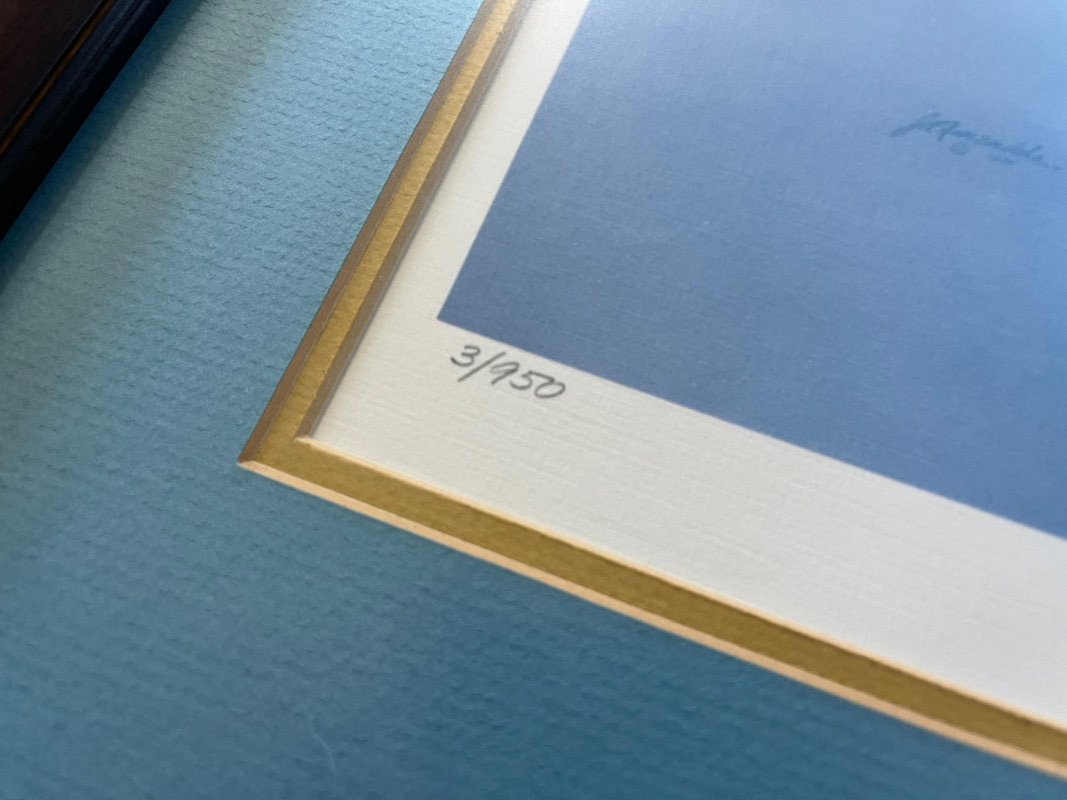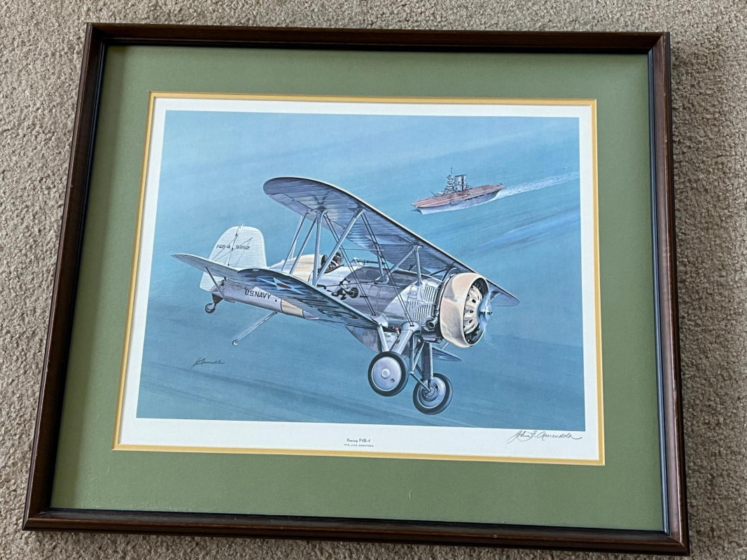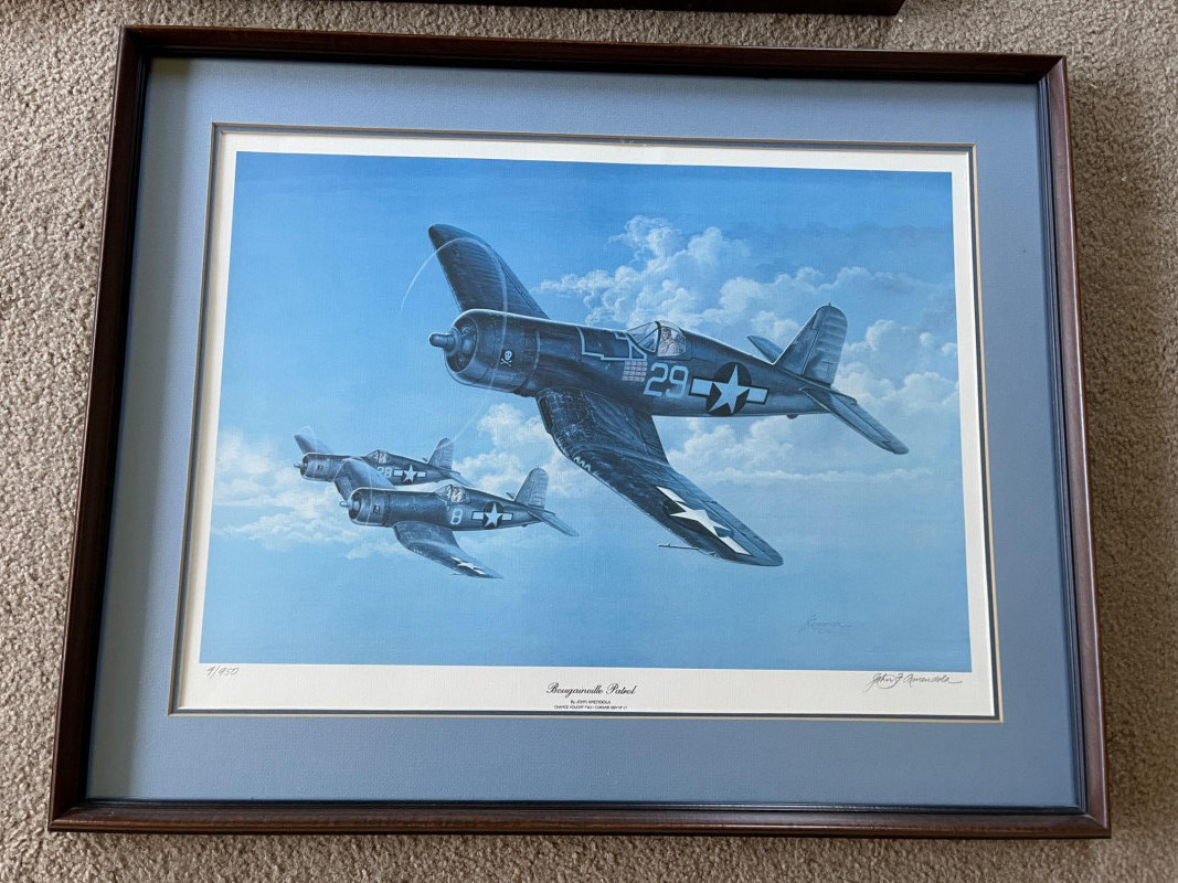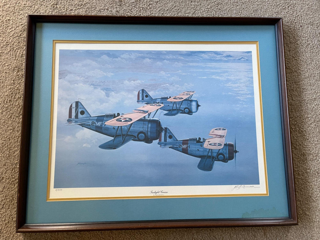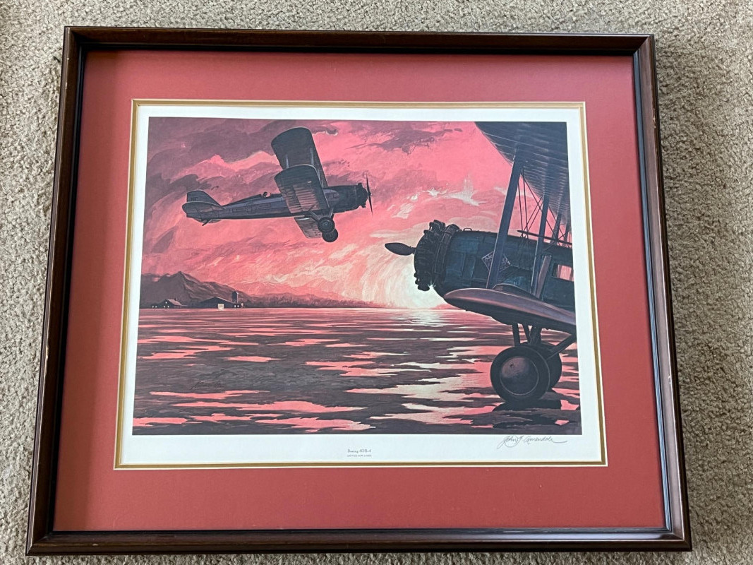 Four "John Amendola" Signed Aviation Prints Artist John Amendola Boeing F4B-4 & 40B-4 Signed Prints by John Amendola 23 x 19 Each "Bougainville Patrol" #4/950 and Twilight Cruise #3/950 22 x 28 Each Gorgeous Framed & Matted Prints