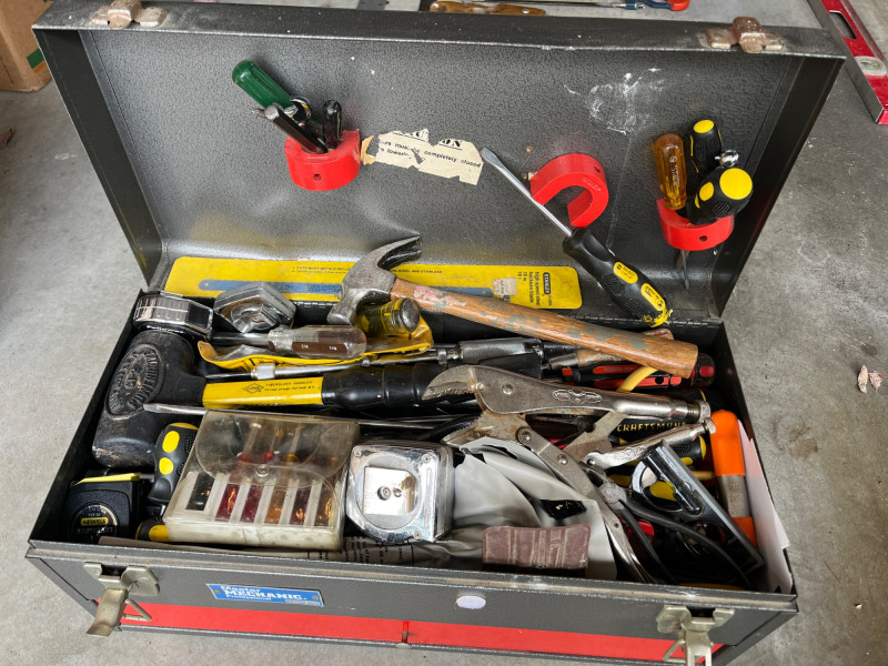 Stuffed Tool Box w/ Tools 20 x 10 x 10 Tool box is stuffed with assorted hand tools