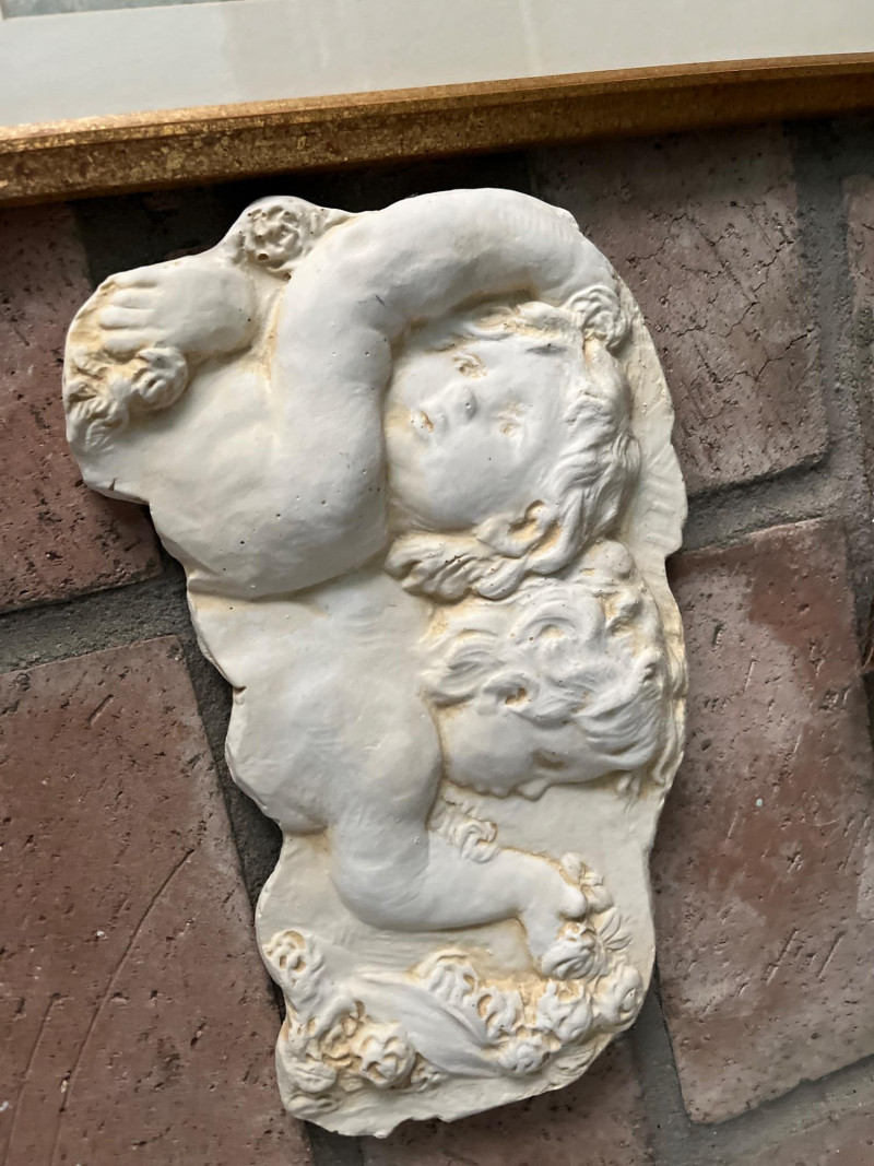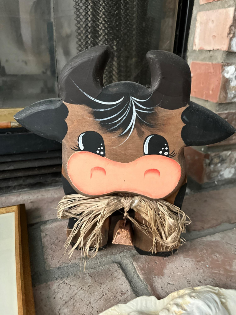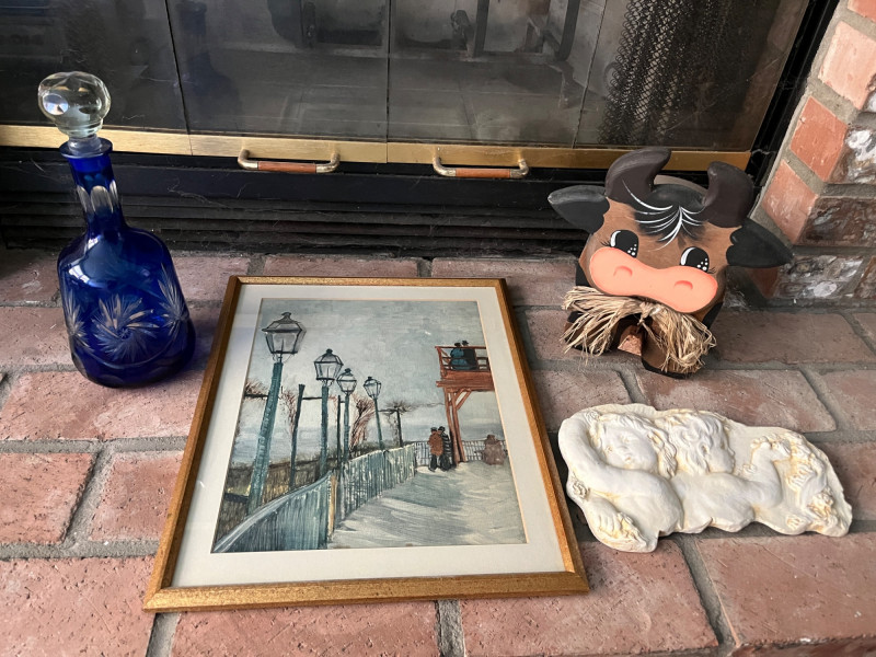 Lot # 206 - Decanter, Van Gogh Print, Wooden Cow, Angel Plaque Lot
