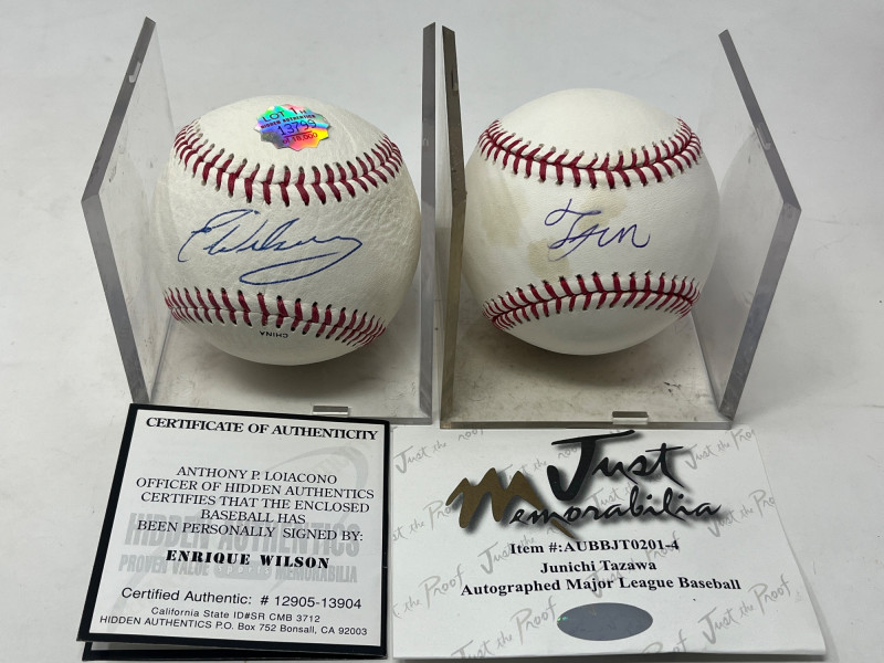 Enrique Wilson & Junichi Tazawa Signed Baseballs Both Baseballs Authenticated