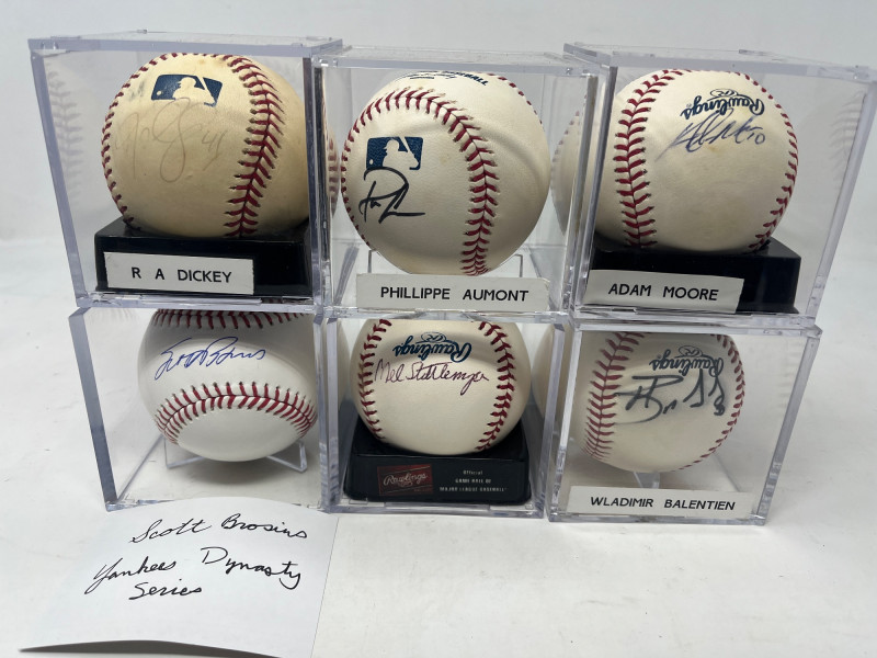 Lot of 6 Signed Baseballs Scott Brosius w/ Tristar Authentication, Wladimir Balentien, RA Dickey, Phillippe Aumont, Mel Stottlemyre, and Adam Moore.