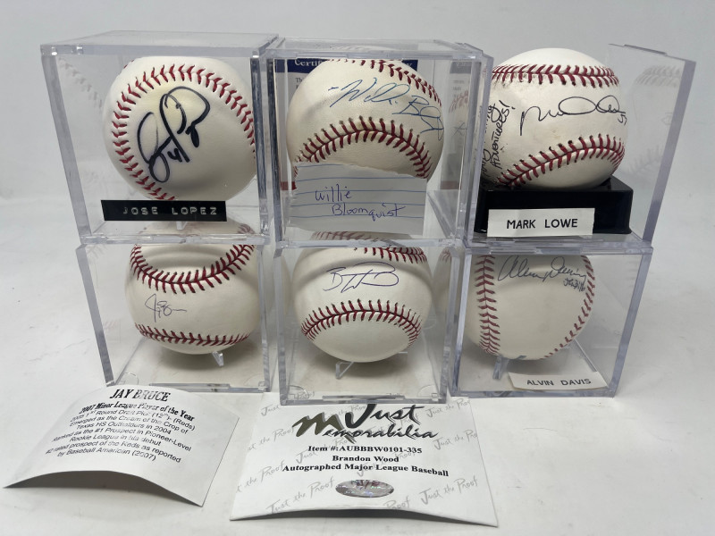 Lot of 6 Signed Baseballs Jay Bruce (authenticated by Tristar), Alvin Davis, Mark Lowe, Jose Lopez, Brandon Wood, Willie Bloomquist