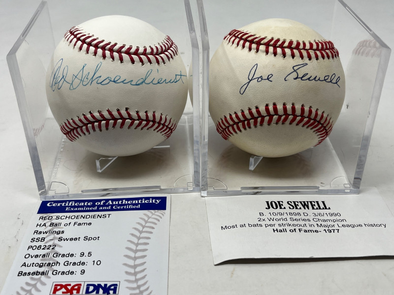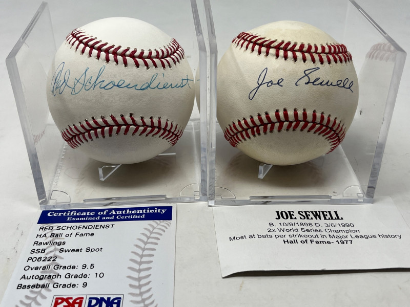 Red Schoendienst & Joe Sewell Autographed Baseballs Red Schoendienst Autographed Baseball PSA Cert & Graded 9.5 Joe Sewell Autographed Baseball Authenticated by Tristar