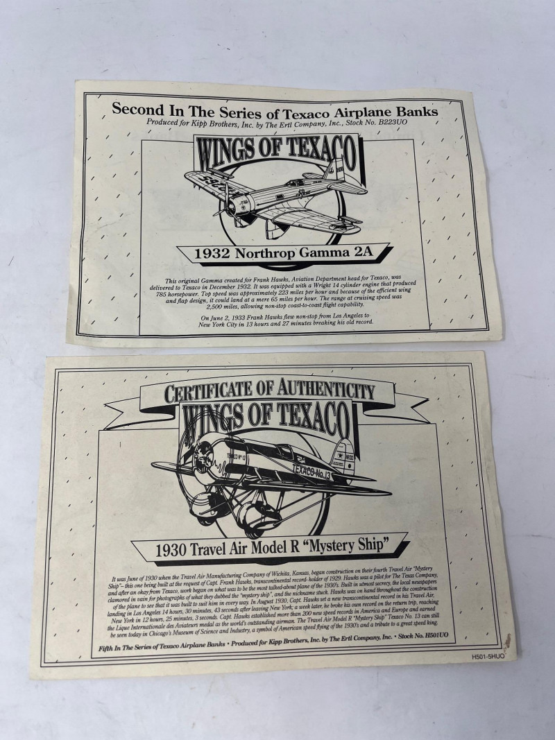 Wings of Texaco Planes 1932 Northrop Gamma 2A In Original Box 1930 Travel Air Model R Mystery Ship Unboxed