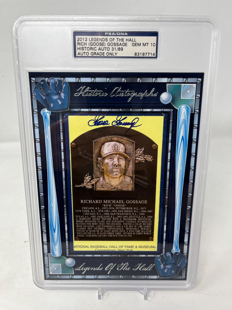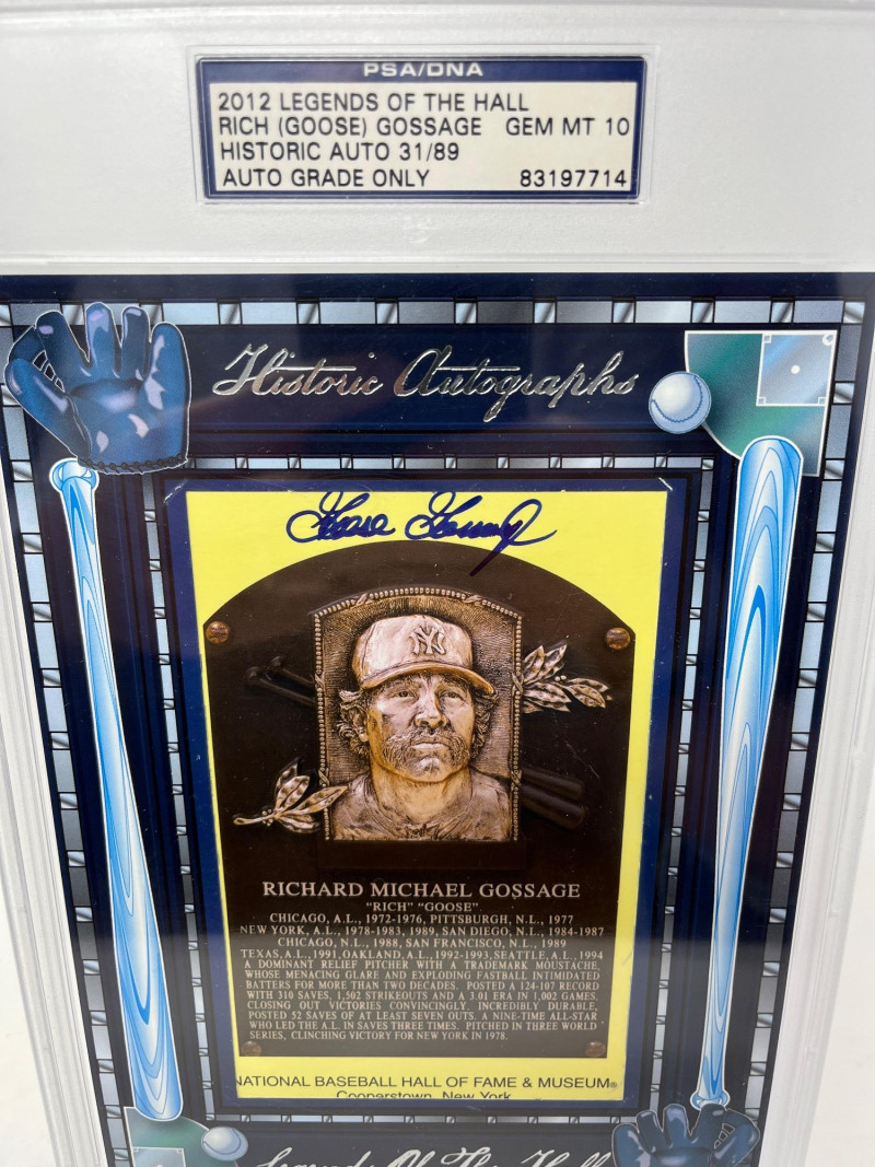 Goose Gossage Autographed HOF Plaque PSA 10 2012 Legends of the Hall Numbered 31/89 PSA 10 Gem MT
