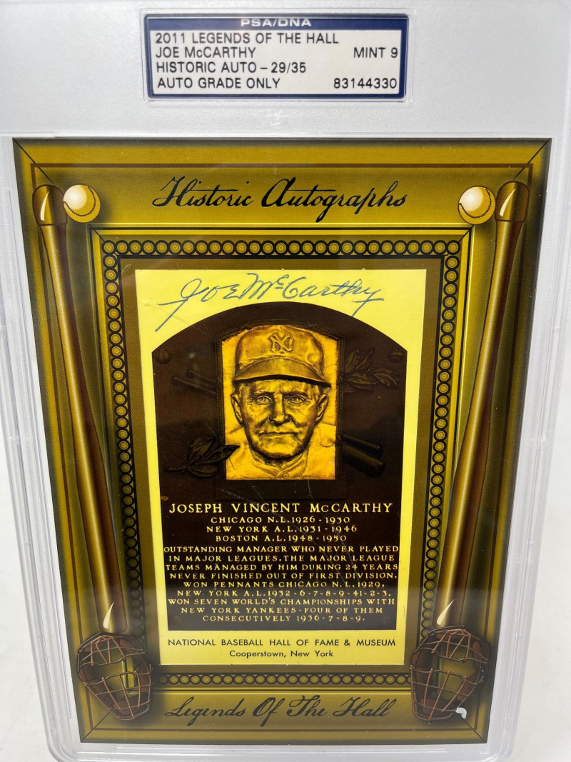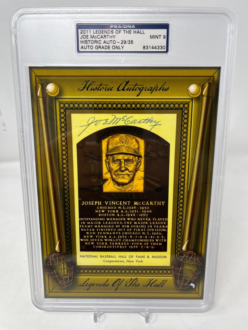 Joe McCarthy Autographed HOF Plaque 2011 Legends of the Hall Numbered 29/35 PSA Mint 9