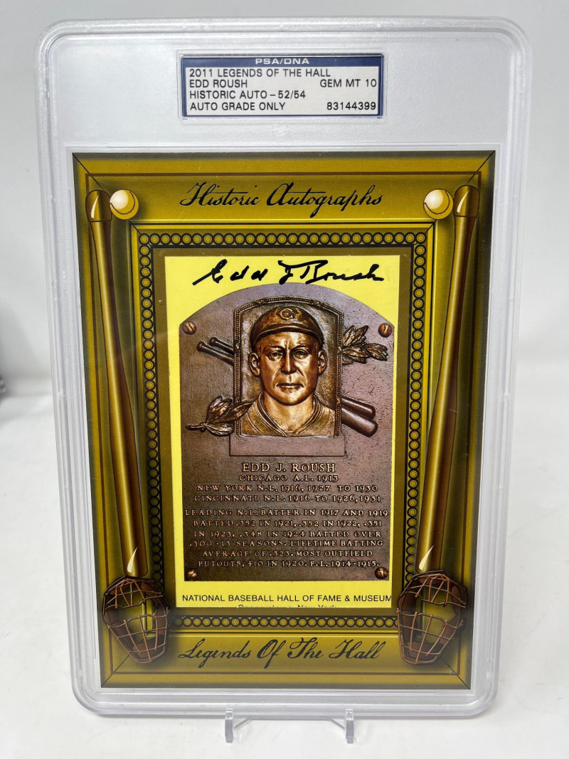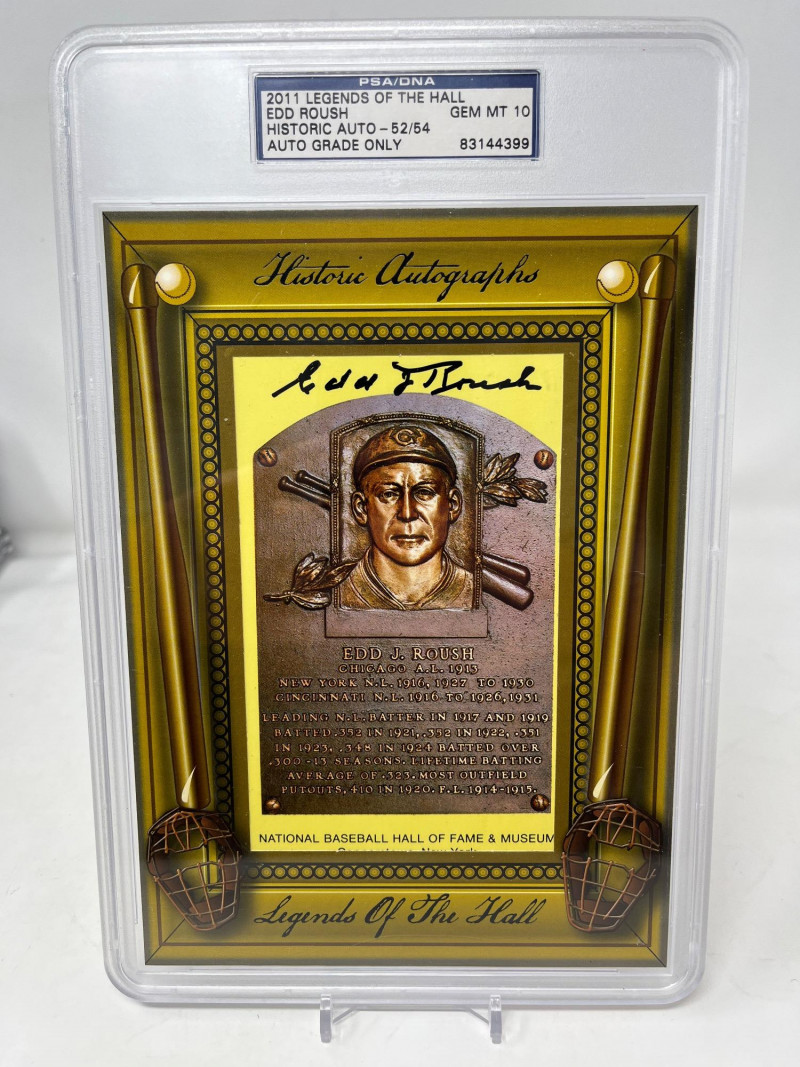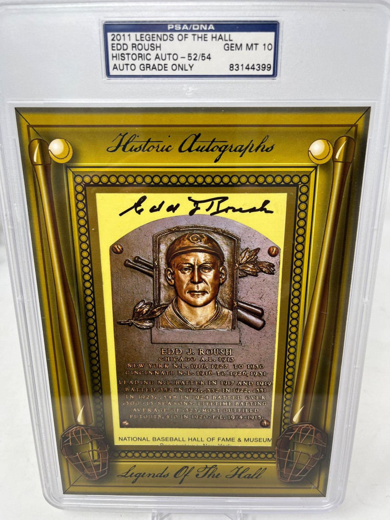 Edd Roush Autographed HOF Plaque PSA 10 2011 Legends of the Hall ]Numbered 52/54 PSA 10