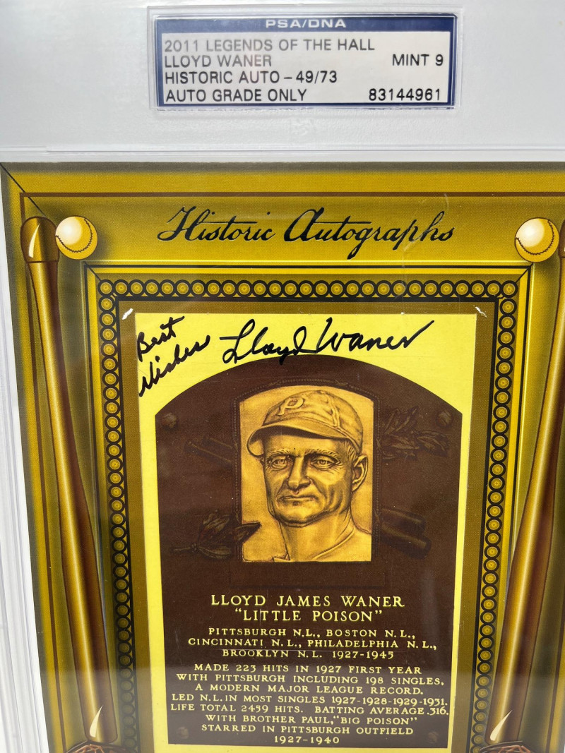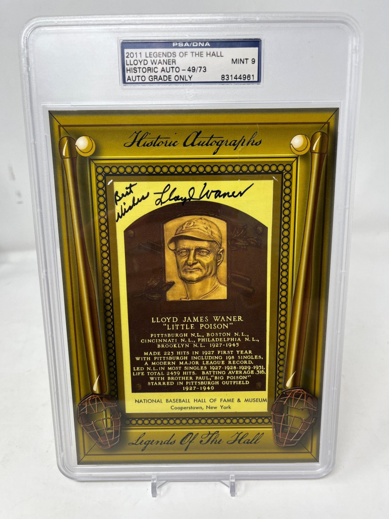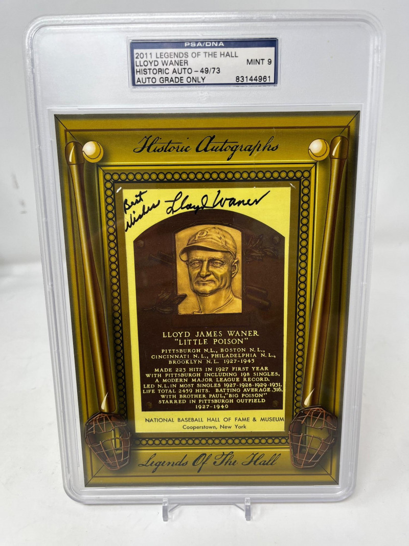 Lloyd Waner Autographed HOF Plaque 2011 Legends of the Hall Numbered 49/79 PSA Mint 9