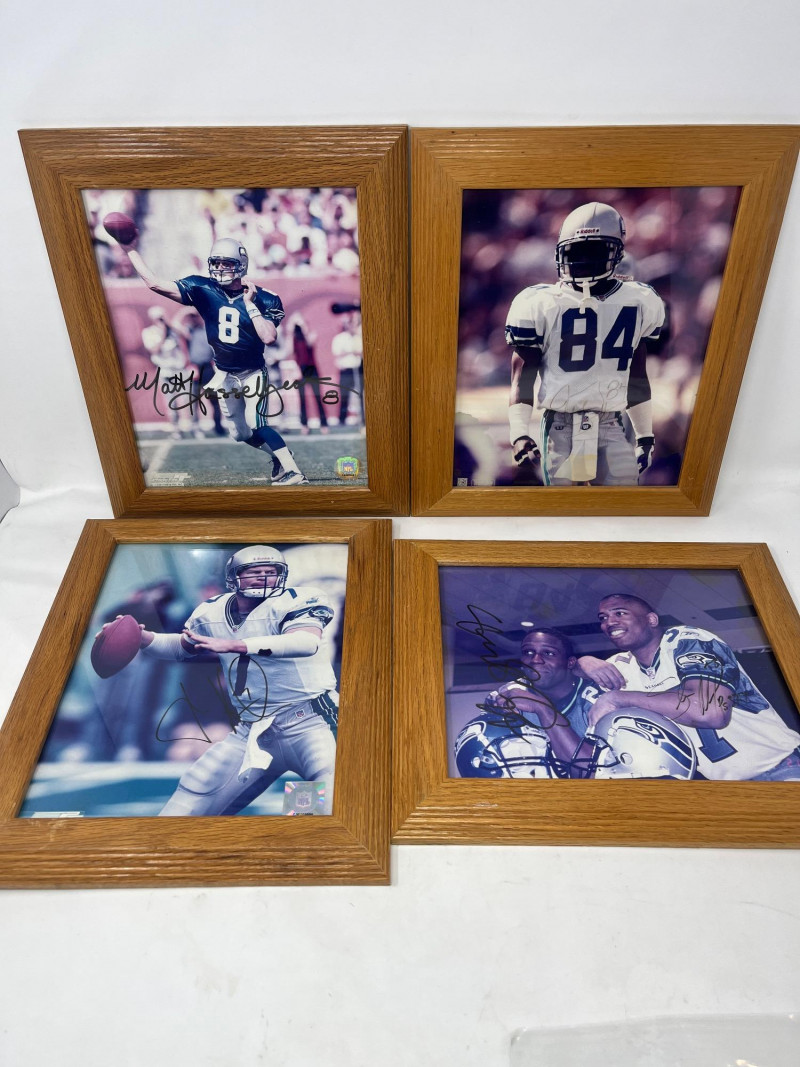 Lot of 4 Seattle Seahawks Autographed 8 x 10's Autographs Include: Shaun Alexander, Matt Hasselback, Joey Galloway, John Kitna.