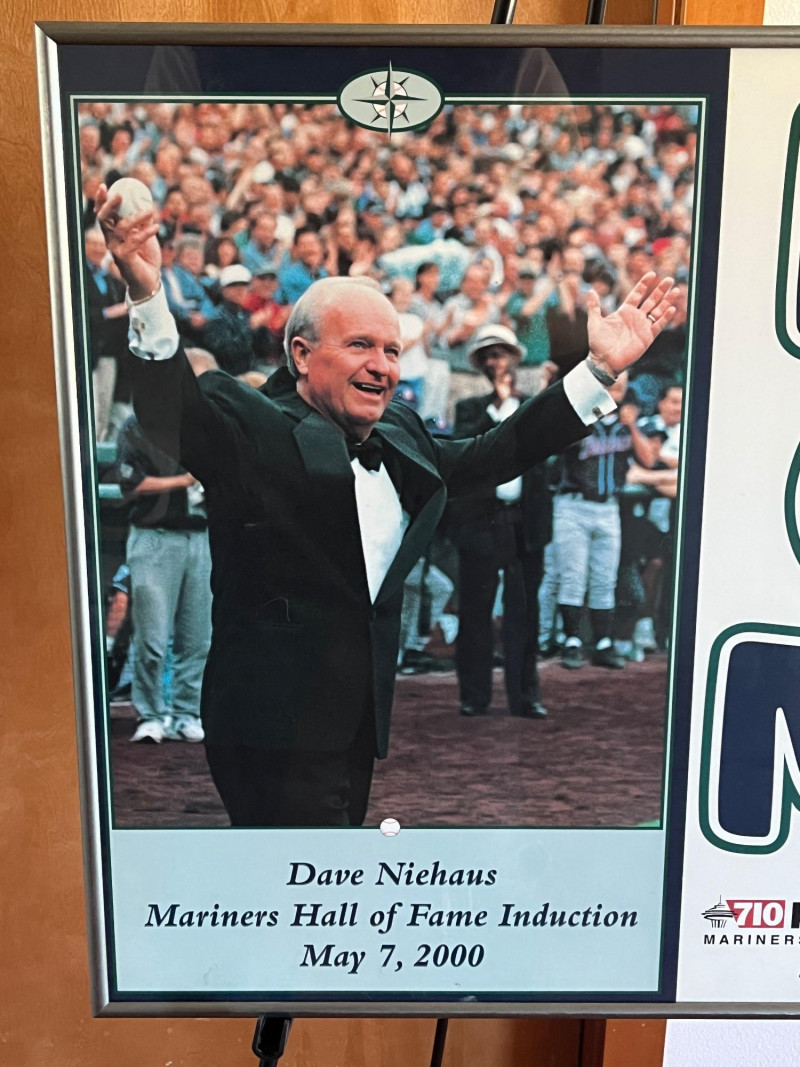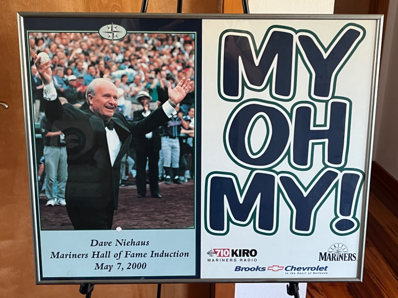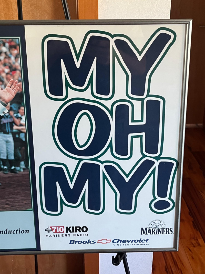 Commemorates Dave Niehaus's Seattle Mariners Hall of Fame induction ceremony on May 7, 2000, and features his famous catchphrase, "My Oh My!". Frame Dimensions: 19.5x 24 Unsigned