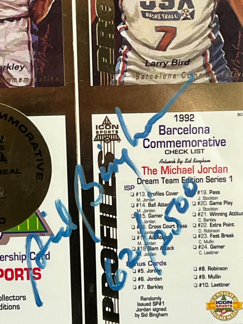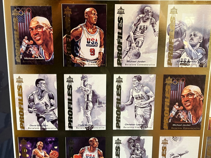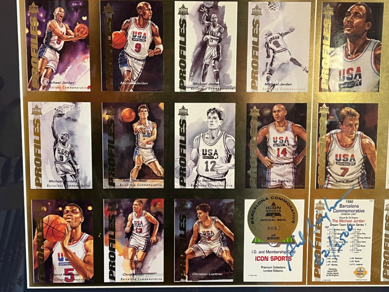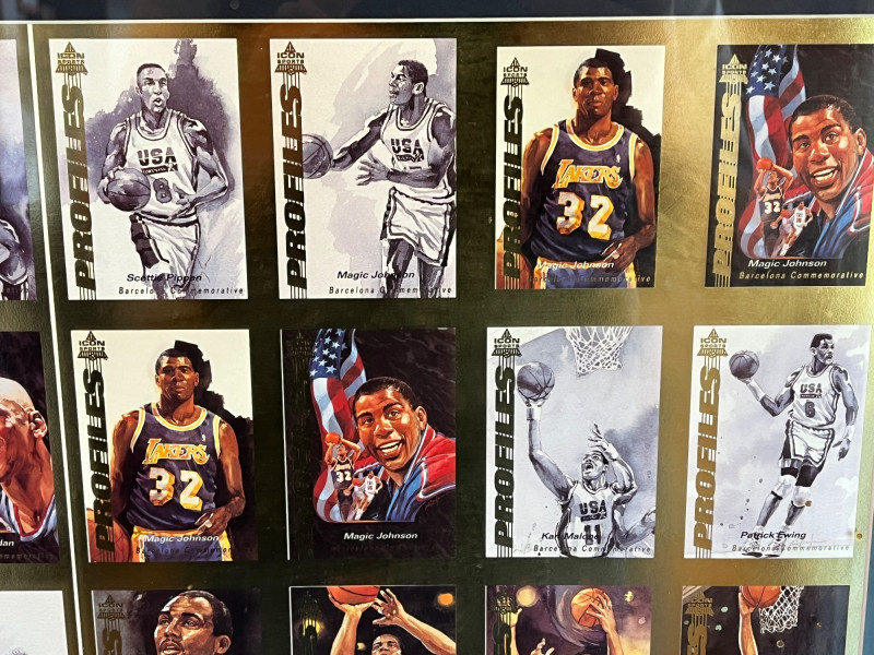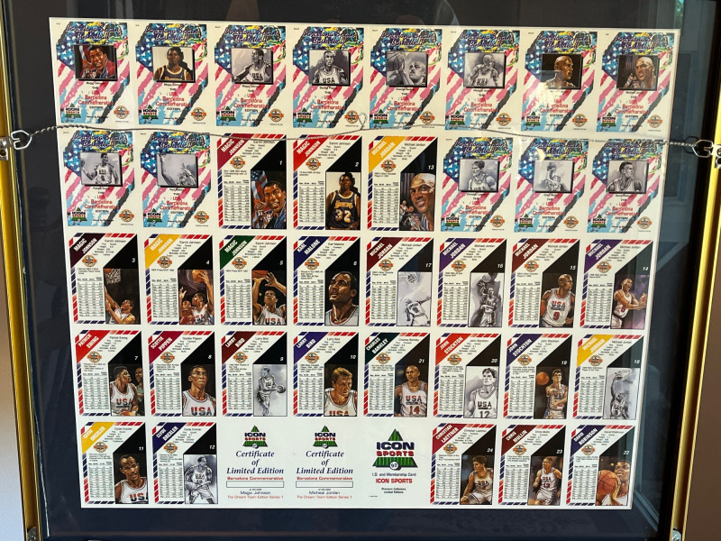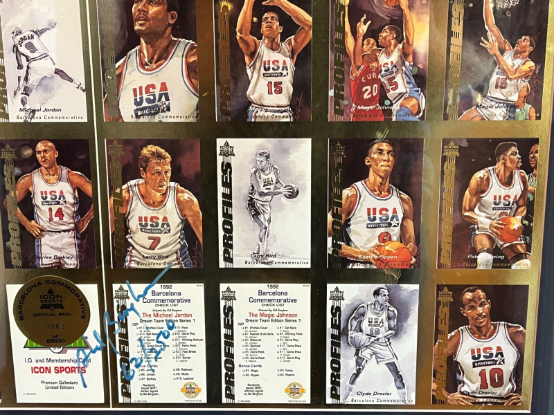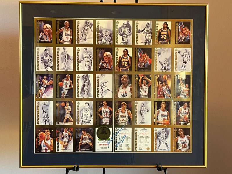 Uncut 1992 Framed "Dream Team" Card Sheet 23x26 Uncut Card Sheet is ‘Icon Sports Limited Edition Uncut Card Sheet’ Numbered 62/2500 1992 Barcelona Olympics Unknown Autograph On Back of Frame Frame Dimensions: 22x26