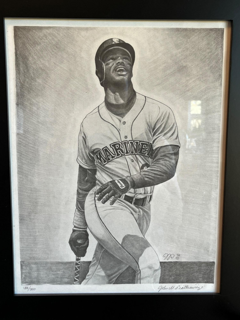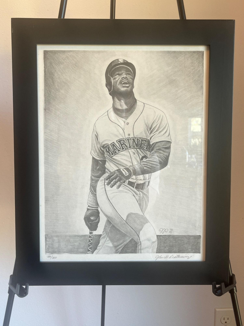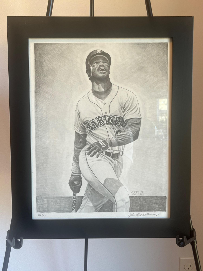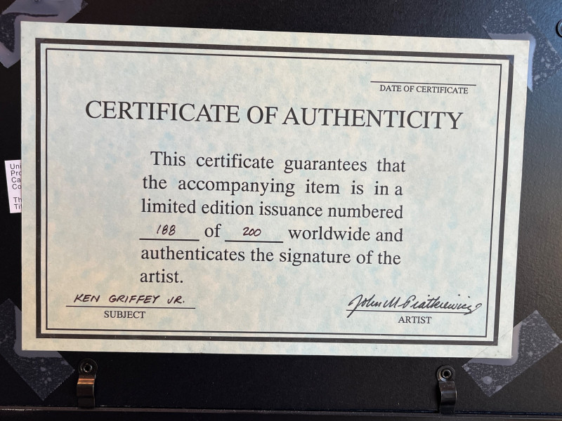 Ken Griffey Jr Framed Art Serial #'d 188/200 Art is accompanied by original Certificate of Authenticity Frame Dimensions: 13.5x17