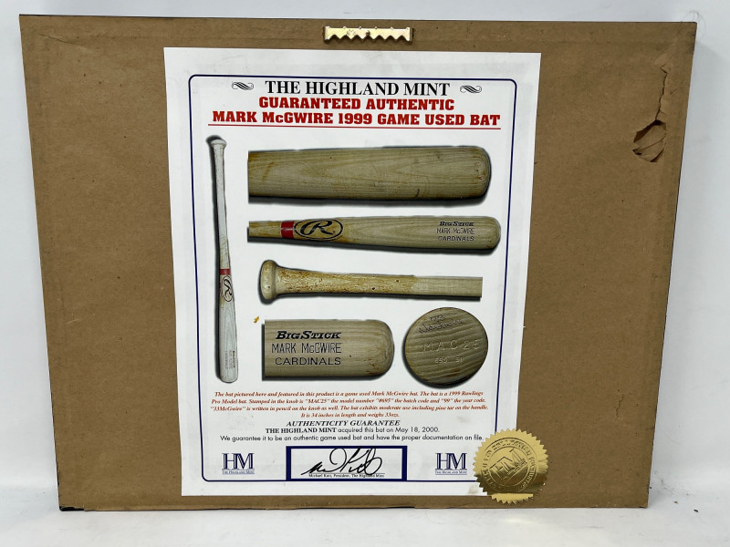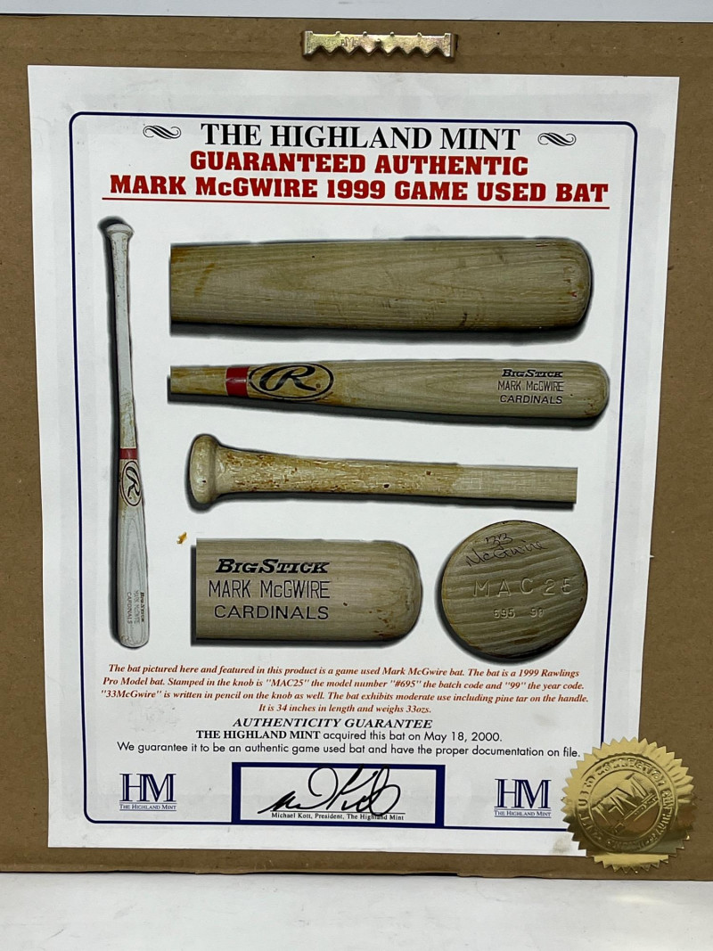 Lot # 138 - Highland Mint Mark McGwire Game Used Bat Plaque