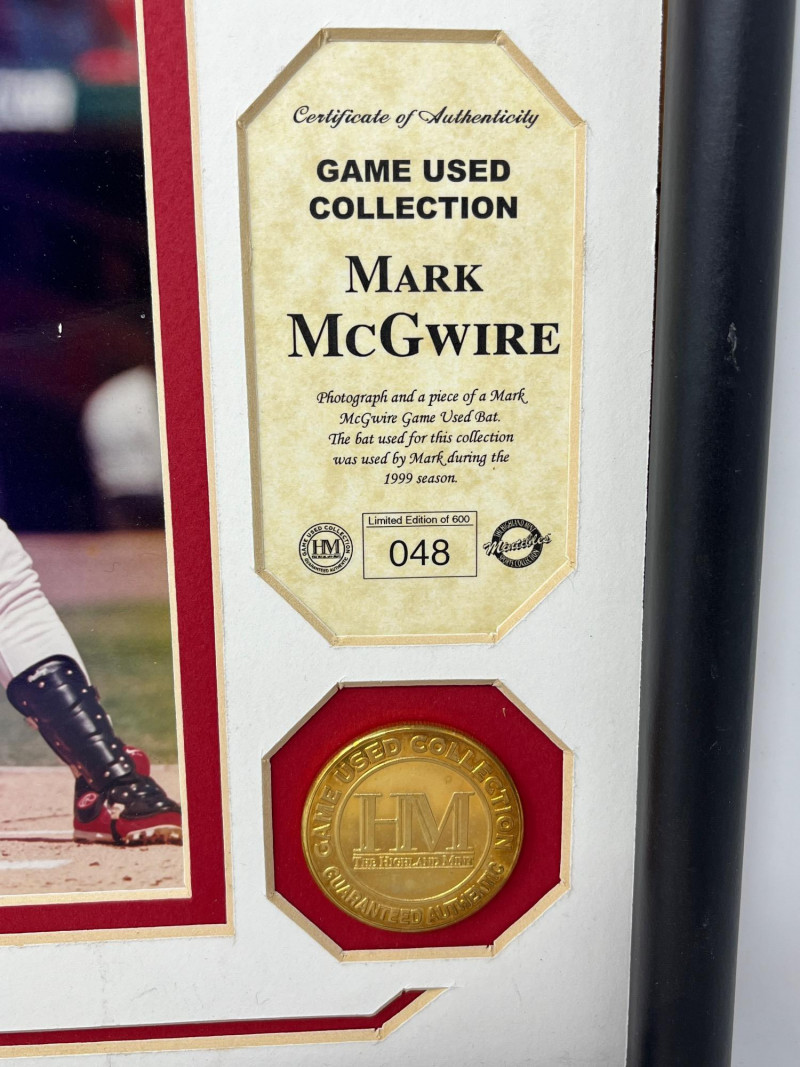 Highland Mint Mark McGwire Game Used Bat Plaque 1999 with COA on Back Numbered 48/600 15x12 Series 1 McFarlane Figurine Mark McGwire In Original Packaging