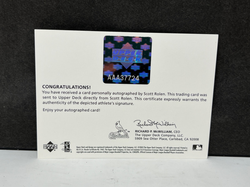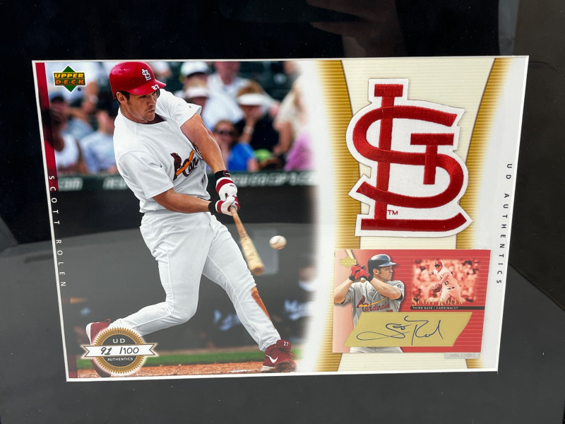 12x15 Rafael Palmeiro Upper Deck Big League Challenge Jersey Swatch 14x17 2003 Upper Deck Portraits Scott Rolen Signed Card w/ Portrait #'d 91/100