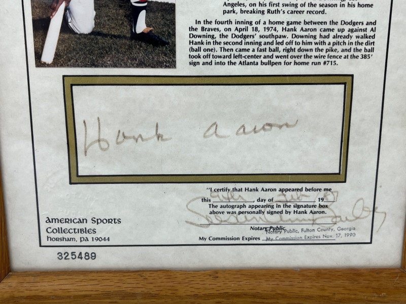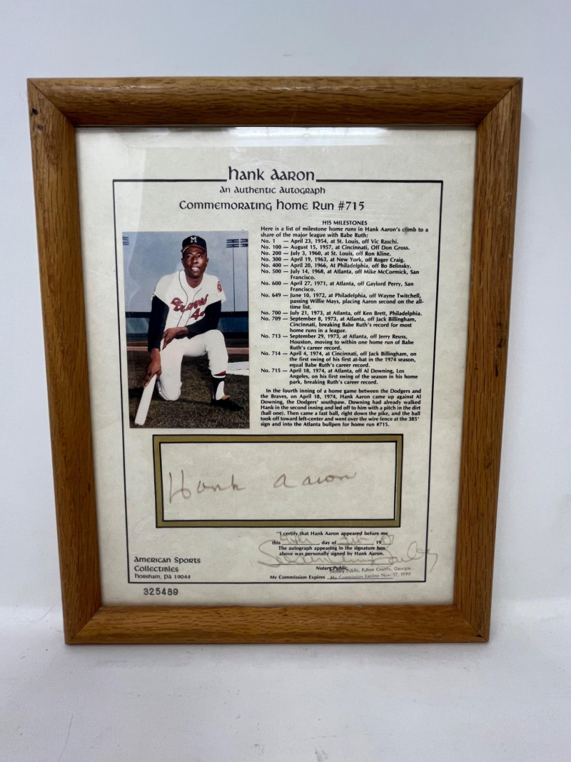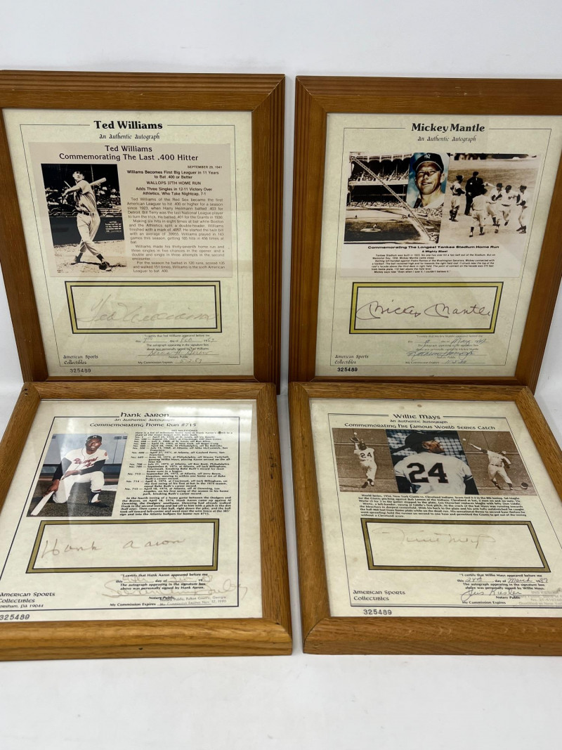 Ted Williams, Mickey Mantle, Willie Mays, Hank Aaron Autographed and Authenticated Plaques! Incredible Collection of Baseball History! Signed & Notarized See water spot on Willie mays. Authentication done by American Sports Collectibles 1987