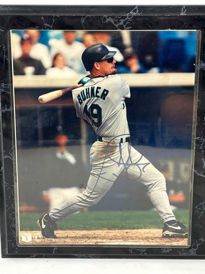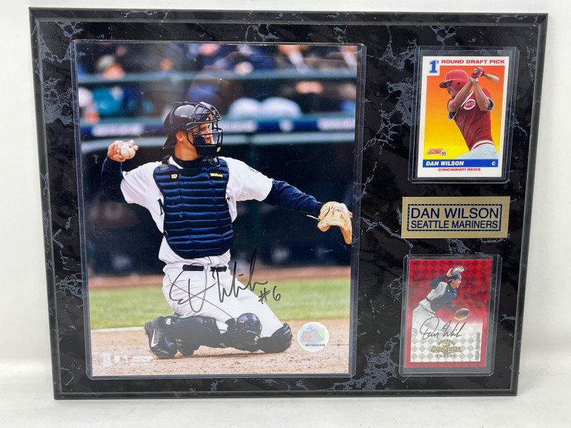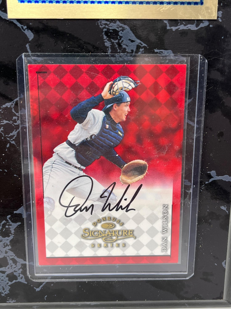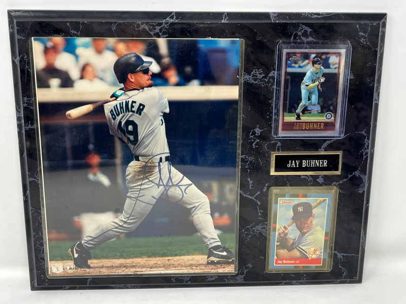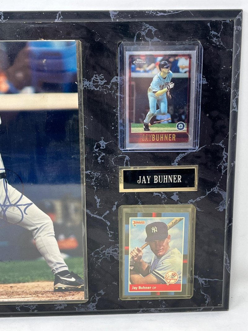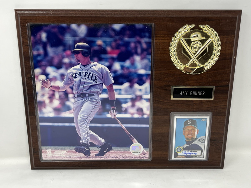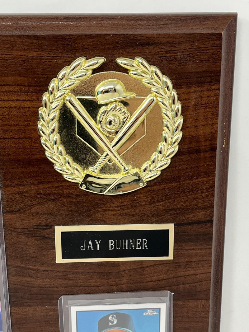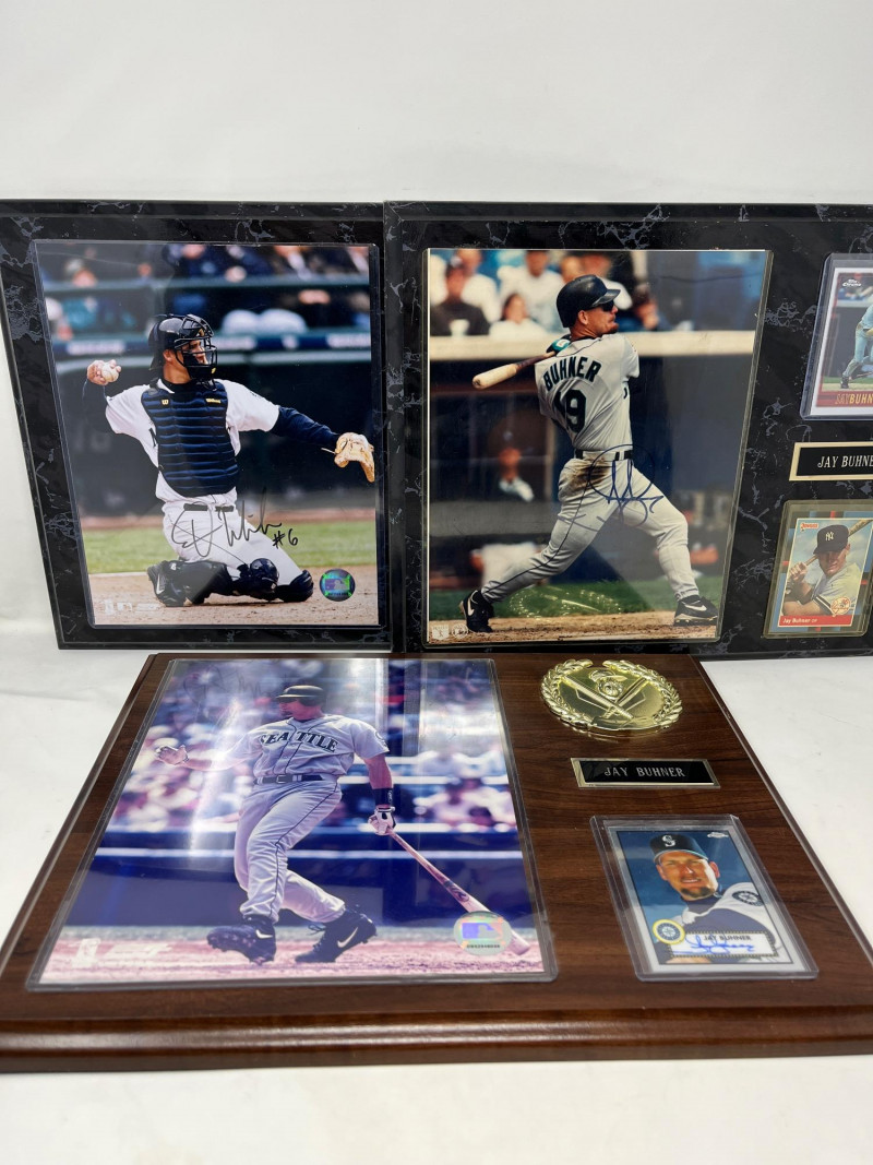 Jay Buhner & Dan Wilson Signed Plaques (3) Jay Buhner Plaque w/ Unsigned 8 x 10 & Autographed Topps Chrome Card Jay Buhner Plaque w/ Autographed 8 x 10 Photo and COA Dan Wilson Autographed 8 x10 w/ COA and Donruss Autographed Card Plaques are 15x12"