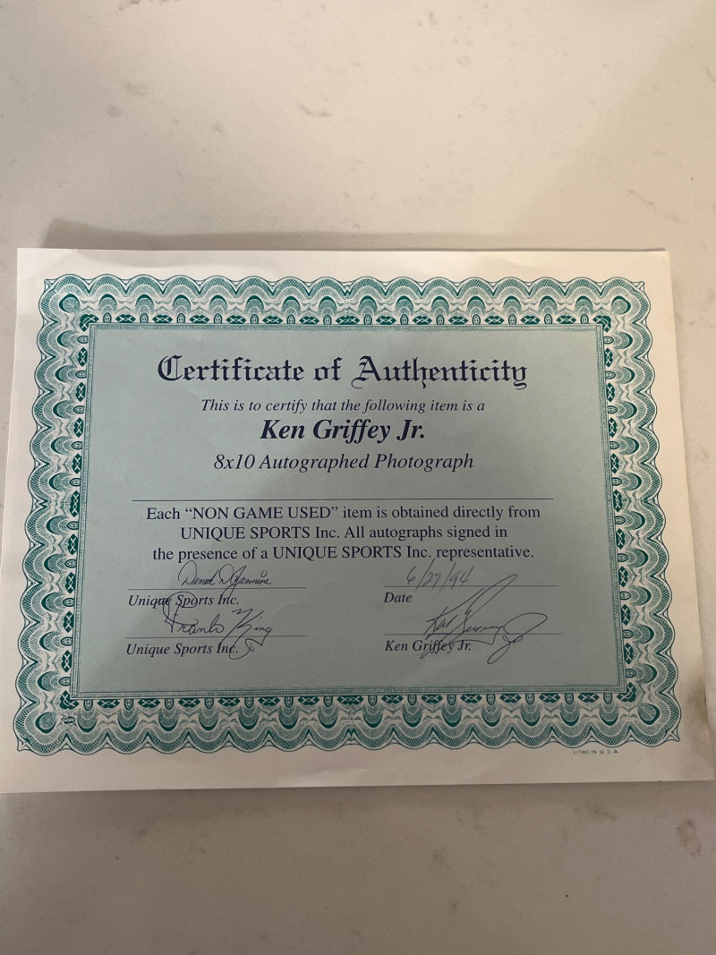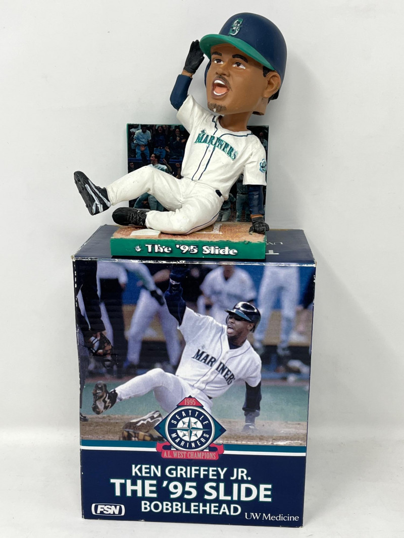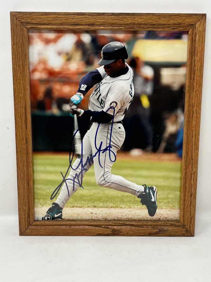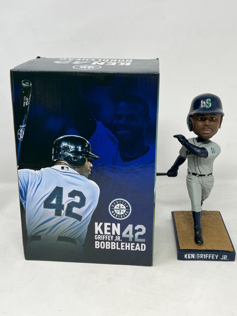 Ken Griffey Jr Signed 8x10 Photo + 3 Bobbleheads Lot Includes: Signed & Framed Ken Griffey Jr 8 x 10 Photo w/ COA Craig Griffey & Ken Griffey Jr. 8x10 Photo Griffey 1995 "The Slide" Bobblehead, Ken Griffey Jr. Collectible Statue, Ken Griffey Jr "42 Jackie Robinson" Bobblehead All bobbleheads are w/ original packaging and box.