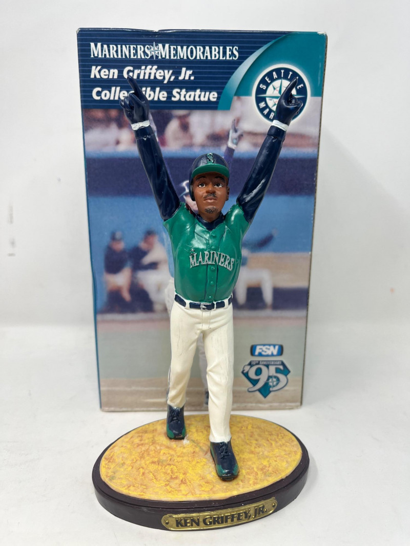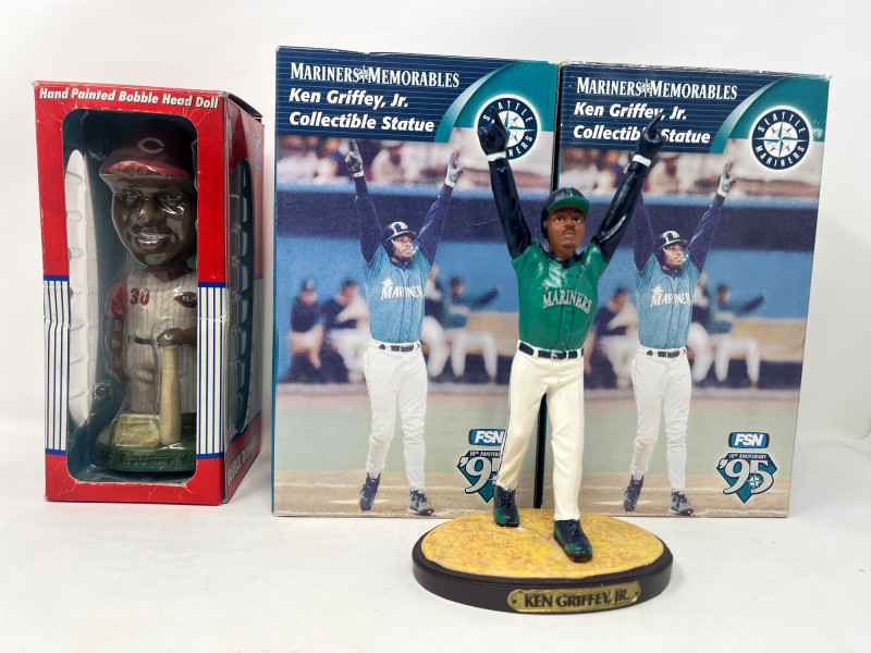 Ken Griffey Jr. Collectible Lot (4) QTY:2 Ken Griffey Jr Collectible Statues w/ Original Box 1 Cincinnati Reds Bobblehead w/ Original Box 1 Ken Griffey Jr Commemorative Baseball w/ Original Box