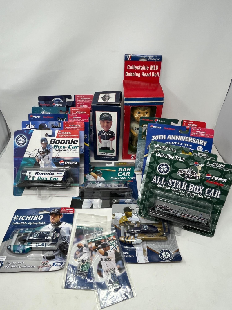 Lot # 159 - 2001 All Star Mariners Bobblehead + Mariners Train Collectibles