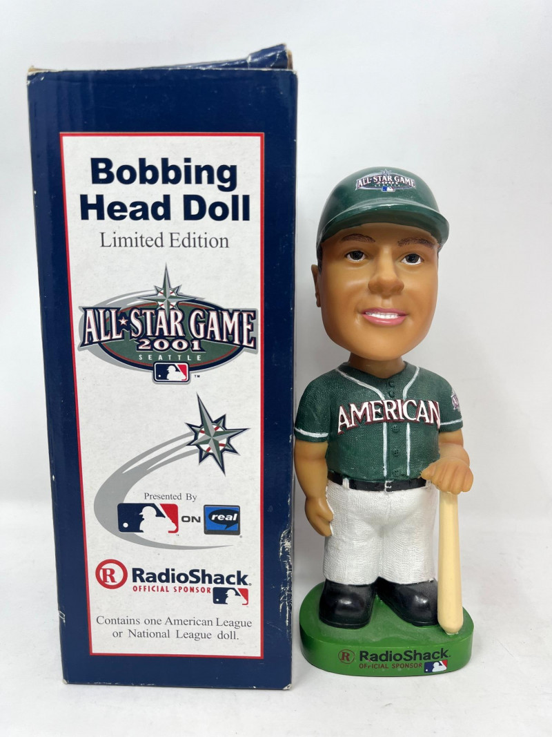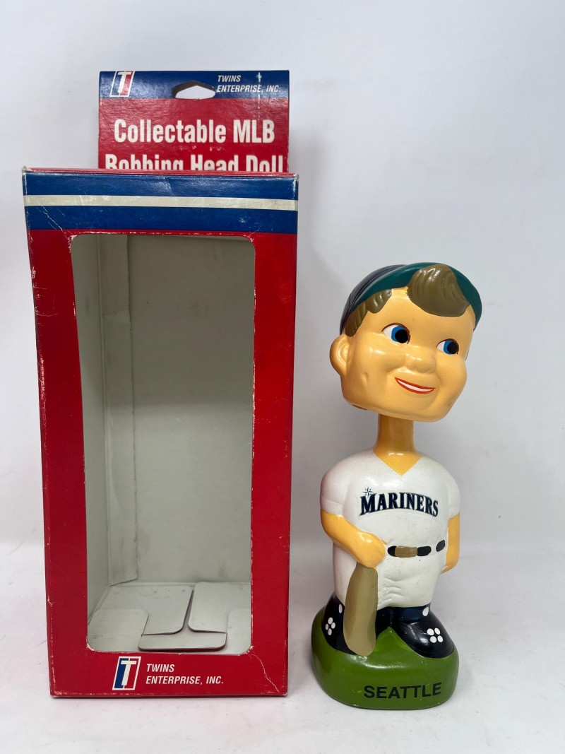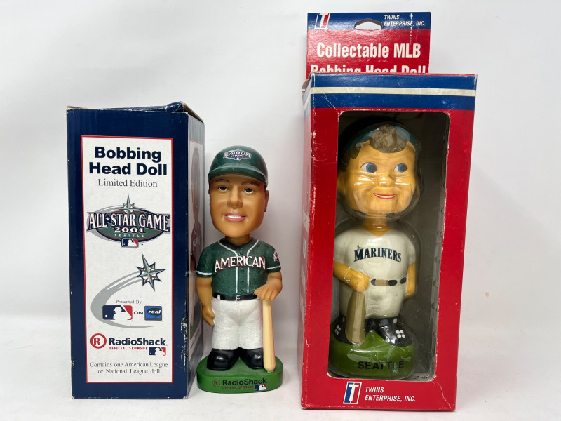 2001 All Star Mariners Bobblehead + Mariners Train Collectibles Lot Includes: - Mariners Late 1990's Bobblehead and 2001 All Star Game Collectible Bobblehead - 14 Mariners Collectible Train Cars (Ichiro, Edgar, + More)