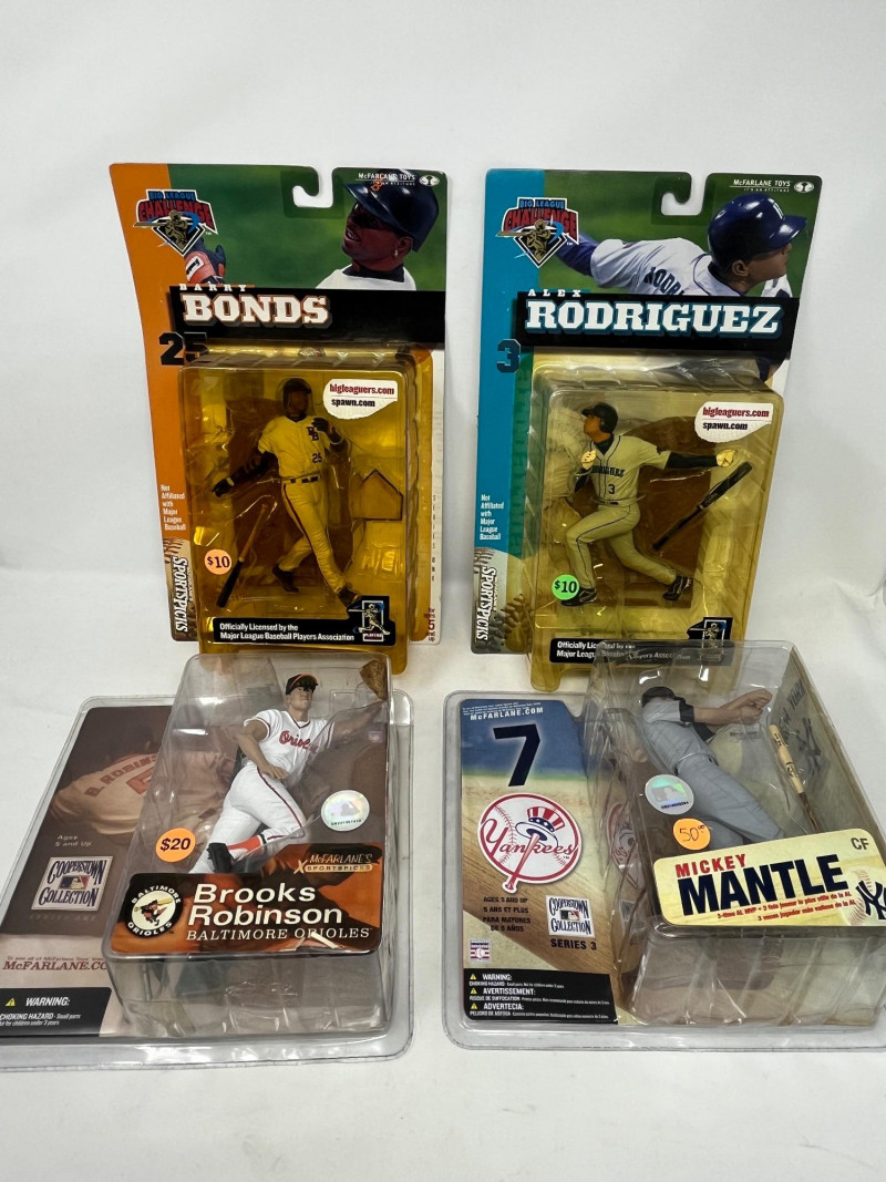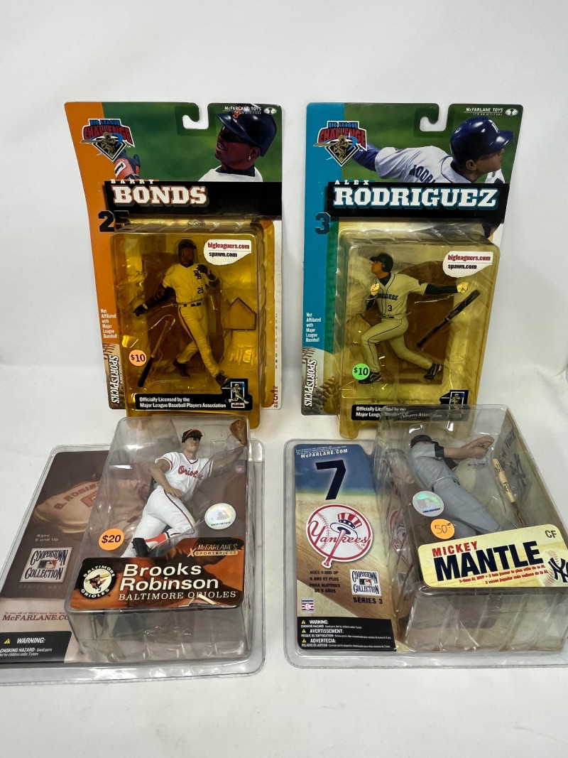 Lot of 4 McFarlane & Spawn Figurines MLB Spawn: Barry Bonds and Alex Rodriguez Series 1 MacFarlane: Brooks Robinson Legends Series 1 & Mickey Mantle Legends Series 3