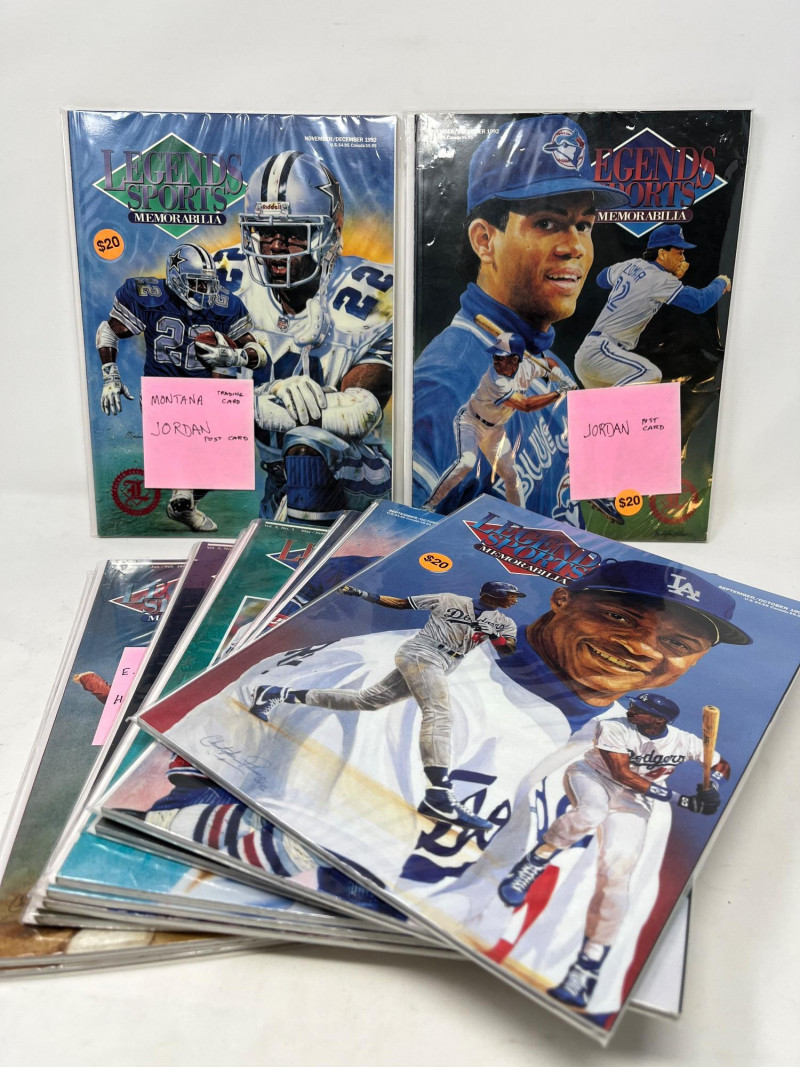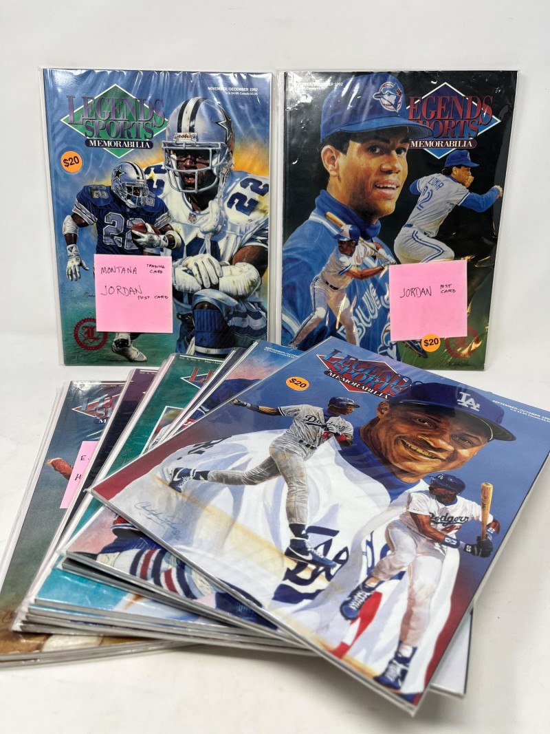 Legends Sports Magazine Volume 5 Each magazine has different uncut sheet of 9 cards and 3 postcards featuring sports legends. Magazines are in mint condition. 12 Total
