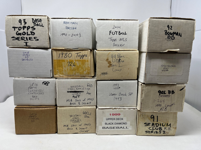 1990s Baseball Insert/Base Lot (16 Boxes) First Boxes Pictured In Lot IS Filled With Insert and Base Card From Baseball Stars of 1990's (Two 660 ct boxes) GREAT VALUE IN THESE BOXES! See Titles On Boxes For What Is In Boxes.
