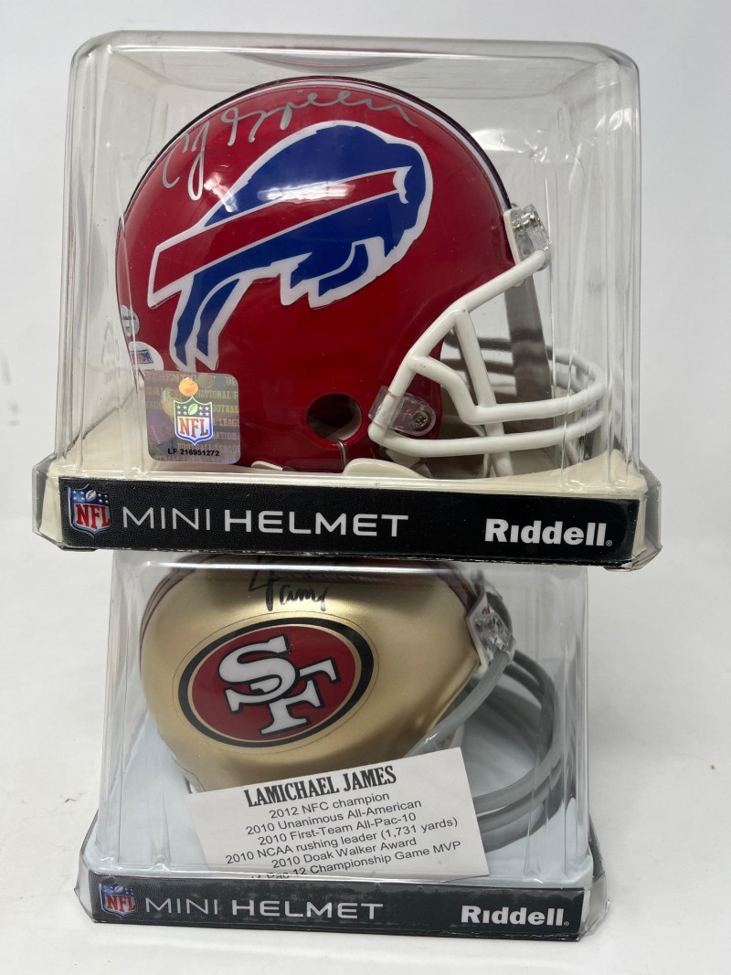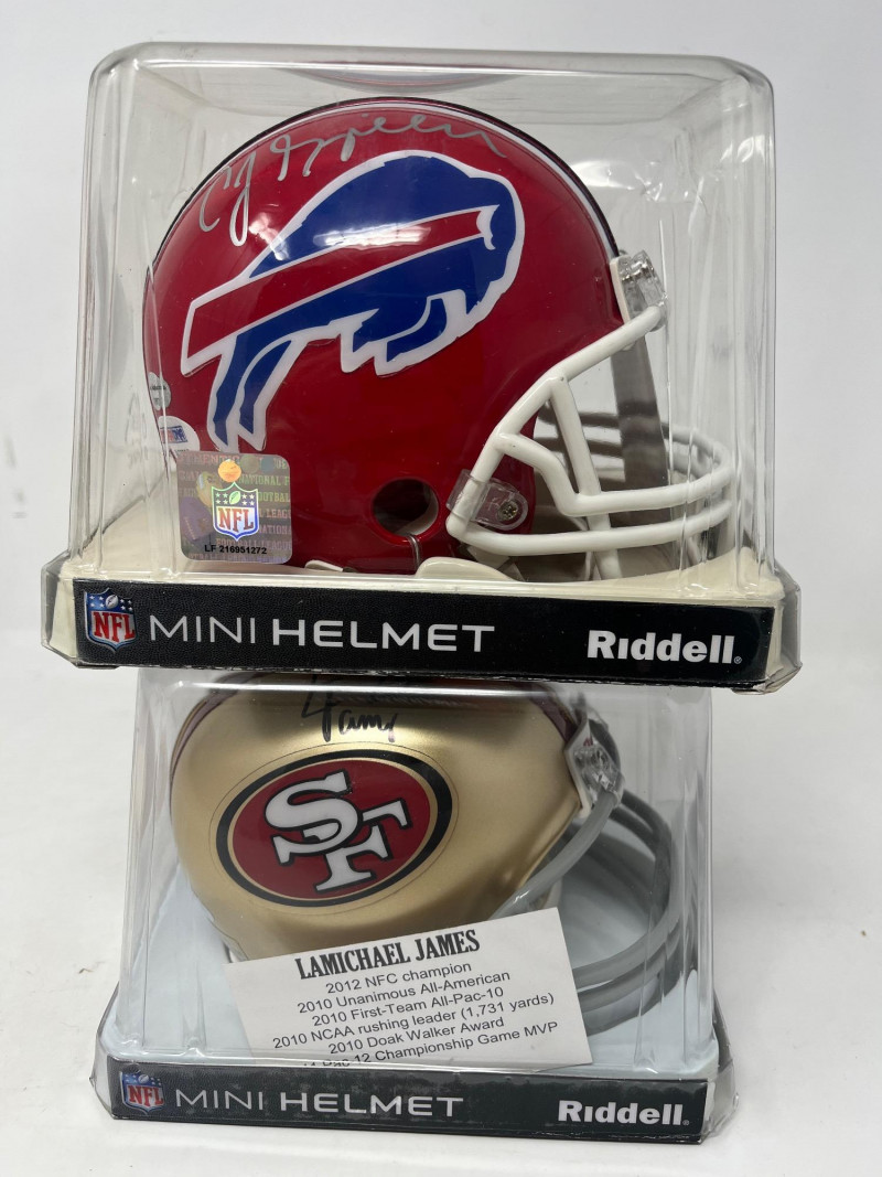 LaMichael James & CJ Spiller Signed Mini Helmets Authenticated by Tristar Authentics & Leaf Authentics Helmets in Original Mini Helmet Packaging