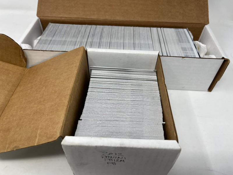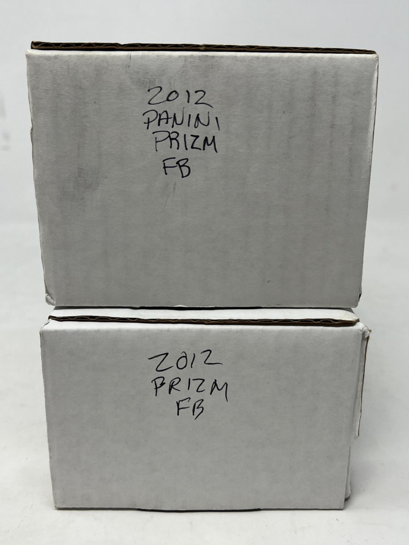 2012 Panini Prizm Football Base Cards (First Year Prizm!) 2 Boxes: First Box is 660 count box with uncompleted set. Best guess is missing 50-75 cards. No Brady. Second box is all duplicates. All Base Prizms Great Find!