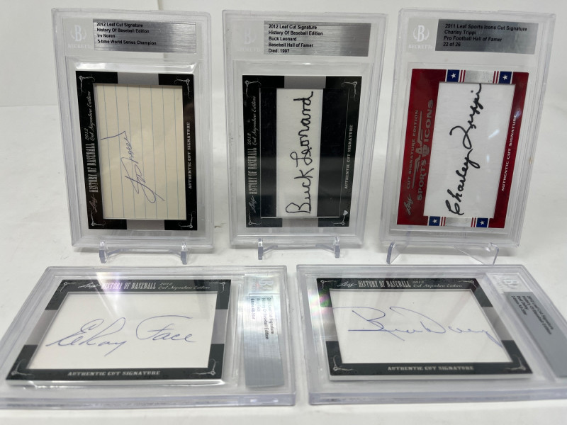 History of Baseball Cut Autographs (5 Total) All 5 Beckett (BGS) Authenticated Featuring: Bud Daley, Irv Noren, Charley Trippi, Buck Leonard, Roy Face