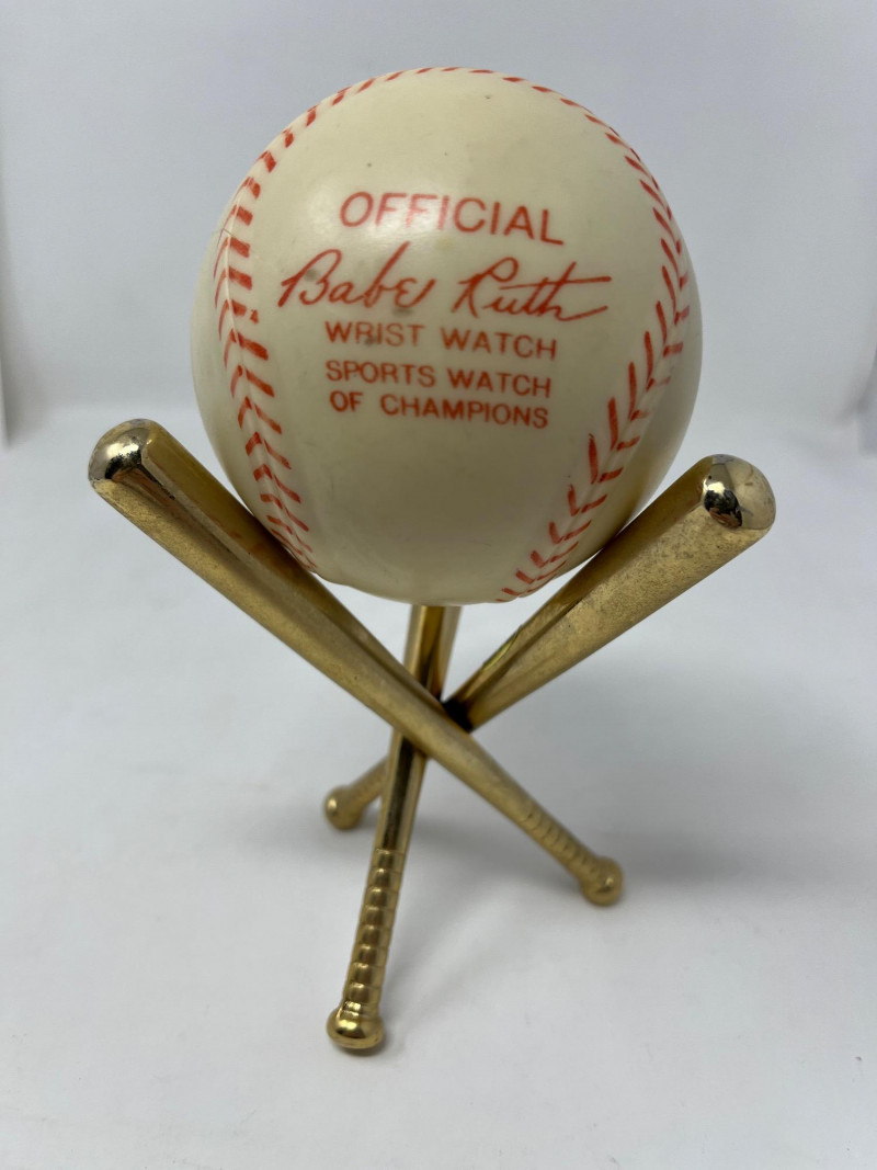 1948 Exacta Official Babe Ruth Wrist Watch Watch Face Is Very Clean!!!! Watch Untested In Original Case (See Picture of Case w/ 1.5" crack) Comes w/ Gold Baseball Bat Ball Display