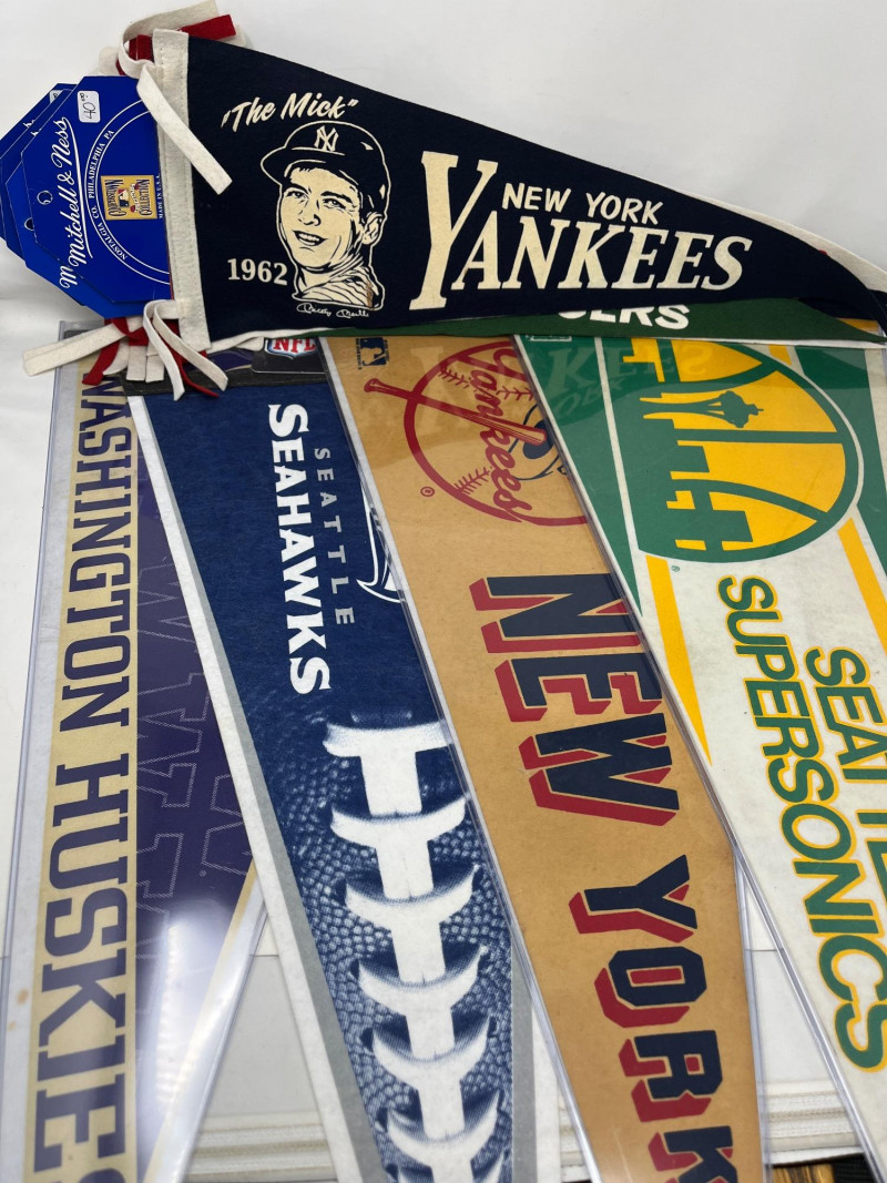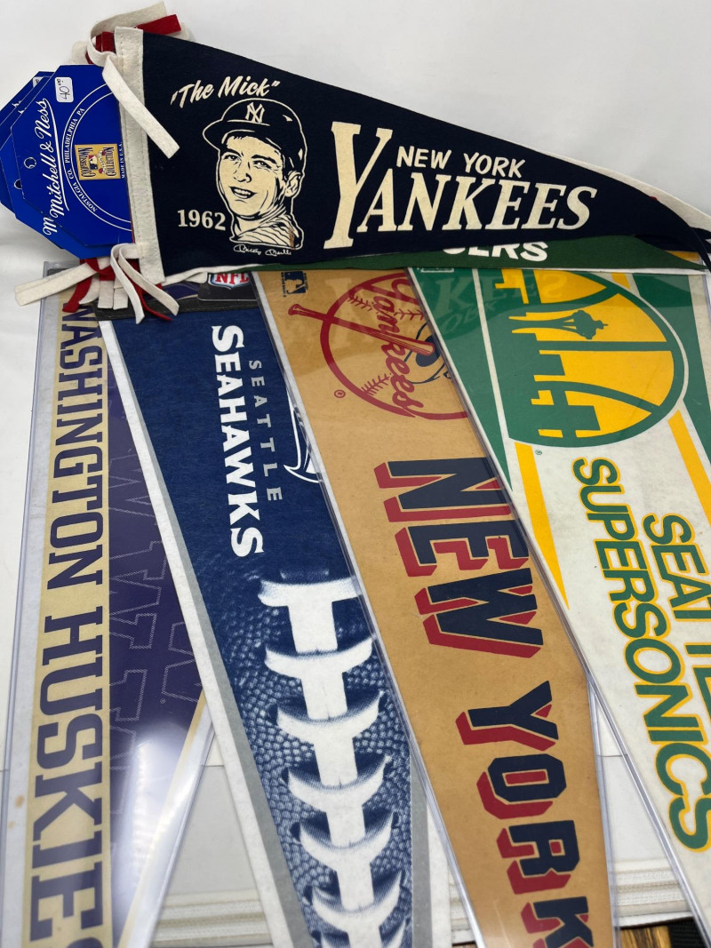 Vintage Pennant Lot (7 Total) Vintage Pennants Include Stunning New York Yankees & Seattle Supersonics Pennants Great Condition!