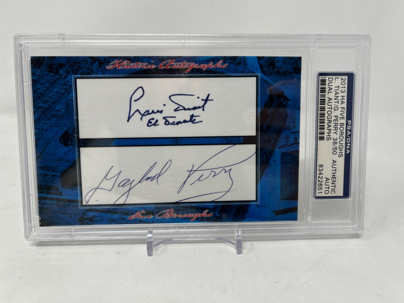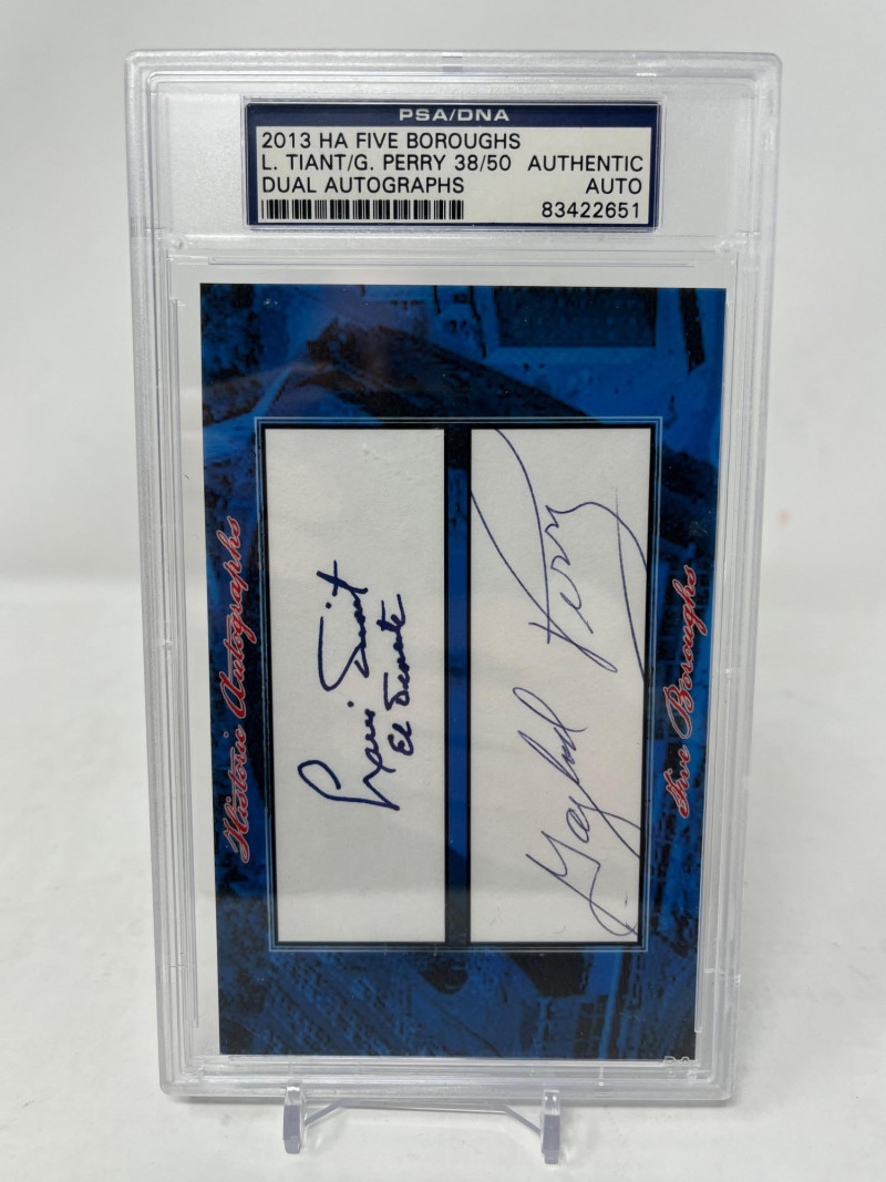 Luis Tiant & Gaylord Perry Dual Cut Autographs PSA Authentic Serial #'d 38/50 From 2013 Historic Autograph "Five Boroughs" PSA Authentic