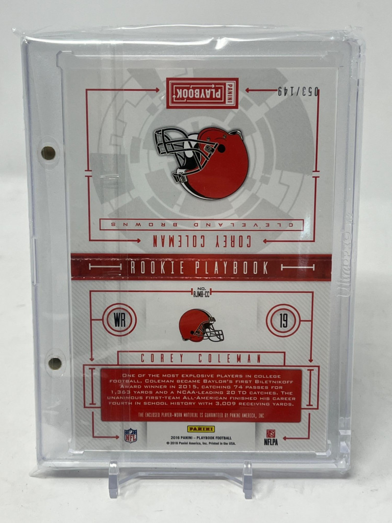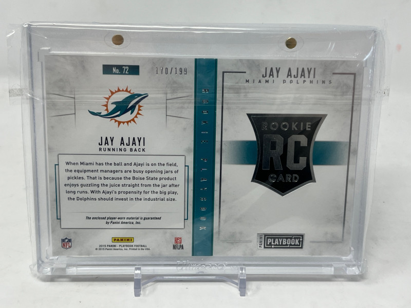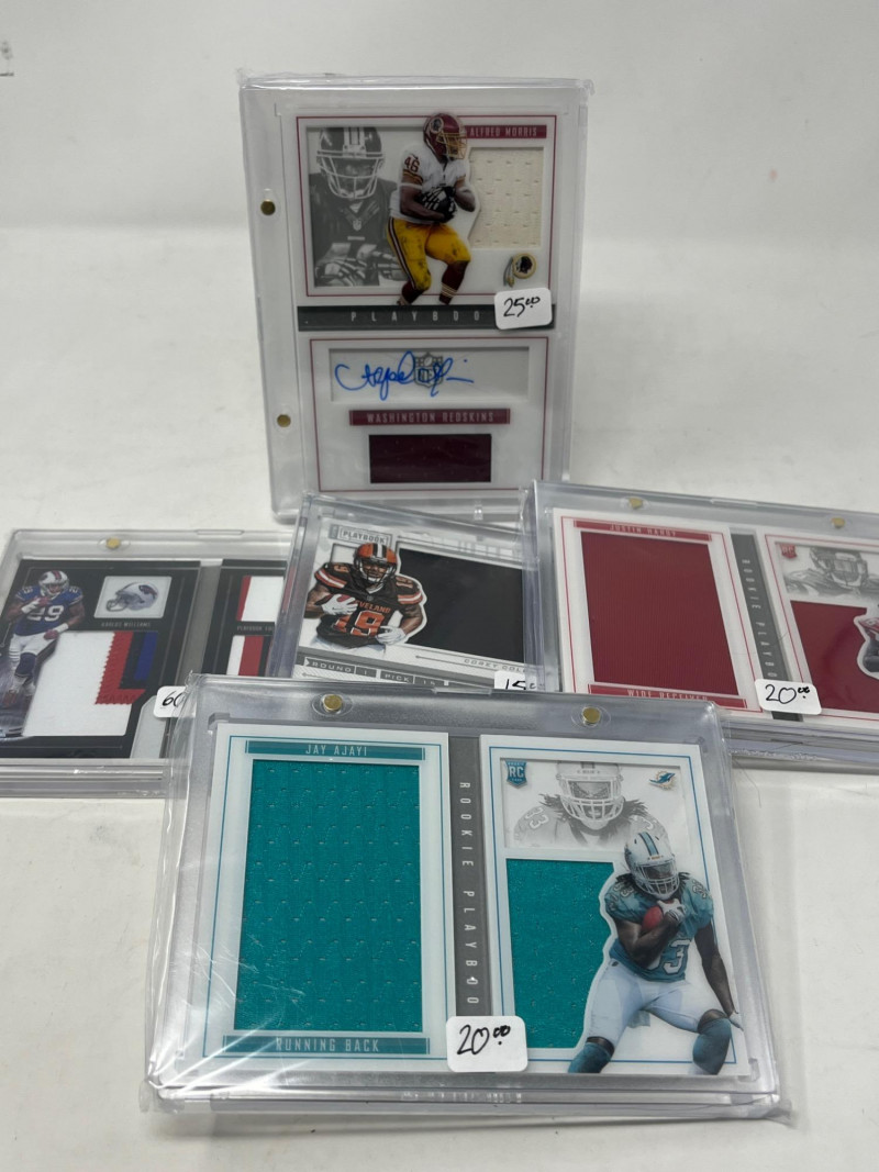 Lot Includes: Alfred Morris 2015 Panini Playbook Autograph Patch Booklet #'d 10/25 Karlos Williams 2016 Panini Playbook Autograph Patch Booklet #'d 10/10 Jay Ajayi Rookie 2015 Panini Playbook Jumbo Patch Booklet #'d 170/199 Justin Hardy Rookie 2015 Panini Playbook Jumbo Patch Booklet #'d 166/199 Corey Coleman 2016 Panini Playbook Jumbo Patch Booklet #'d 53/149