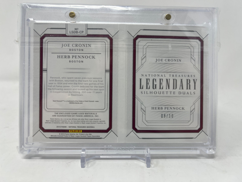 2019 National Treasures Joe Cronin/Herb Pennock Booklet Game Used Legendary Silhouette Dual Booklet Serial Numbered 8/10