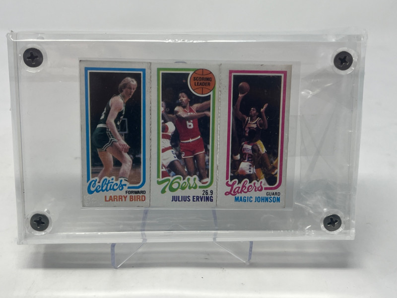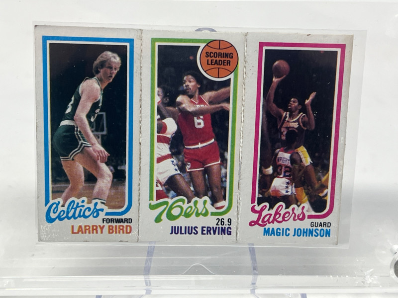 Lot # 12 - 1980-81 Topps Larry Bird RC, Magic Johnson RC, Julius Erving