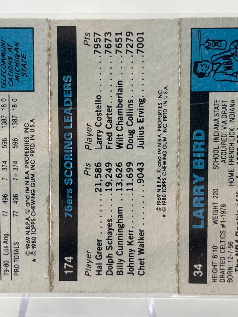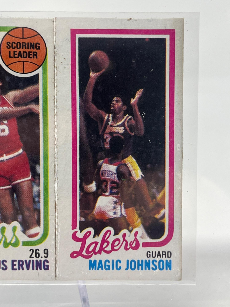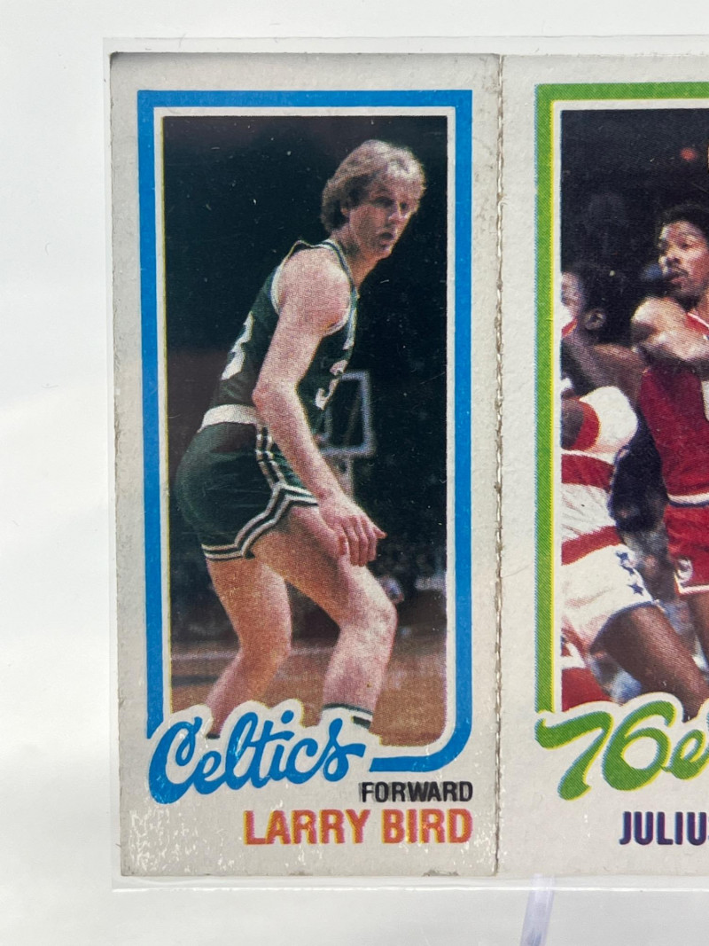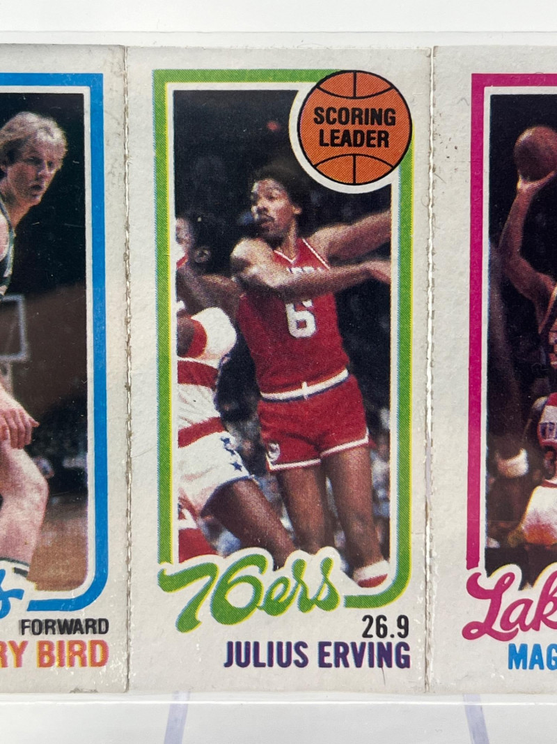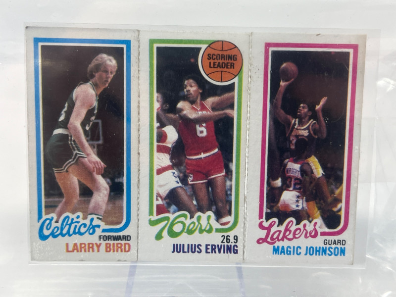1980-81 Topps Larry Bird RC, Magic Johnson RC, Julius Erving Magic Johnson & Larry Bird Rookie Card. Also Dr J Julius Erving Ungraded Raw See Photos To See That Card Has Been Separated!