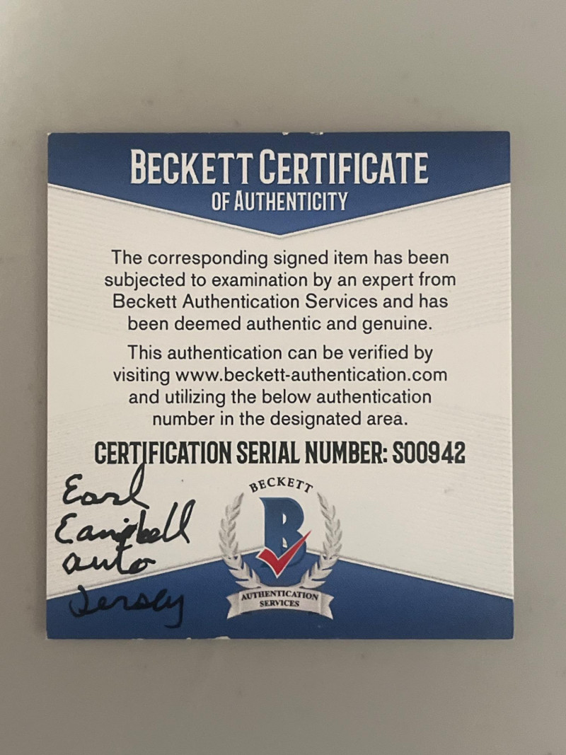 Earl Campbell Autographed & Authenticated Jersey Authenticated by Beckett Size XL