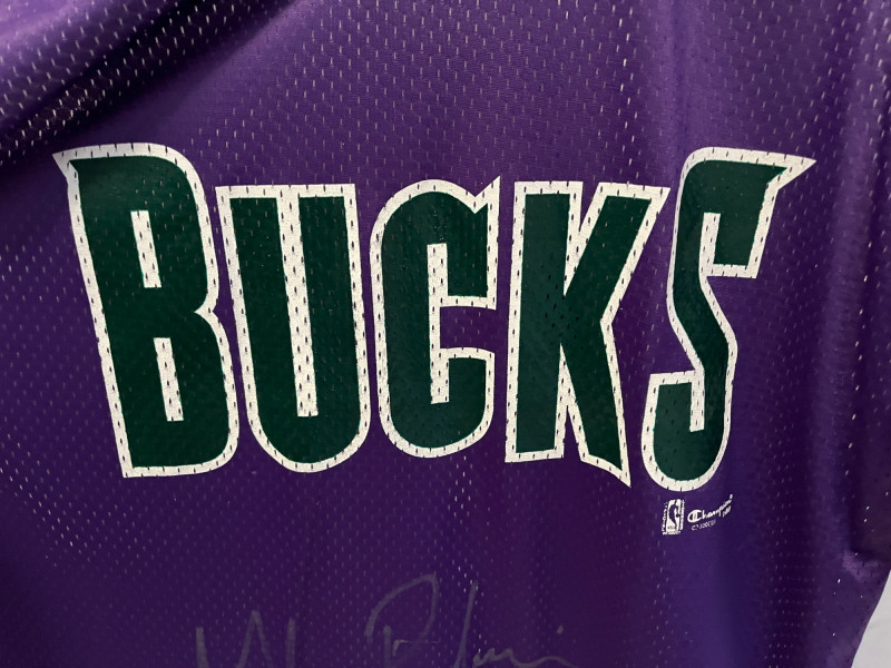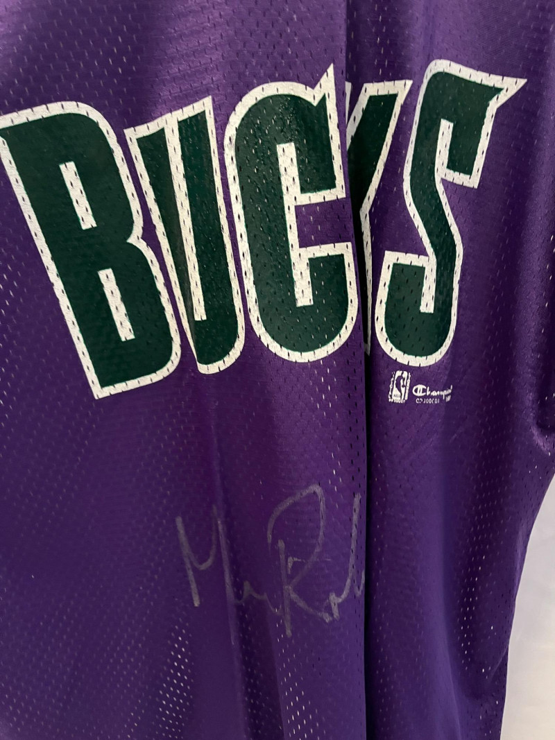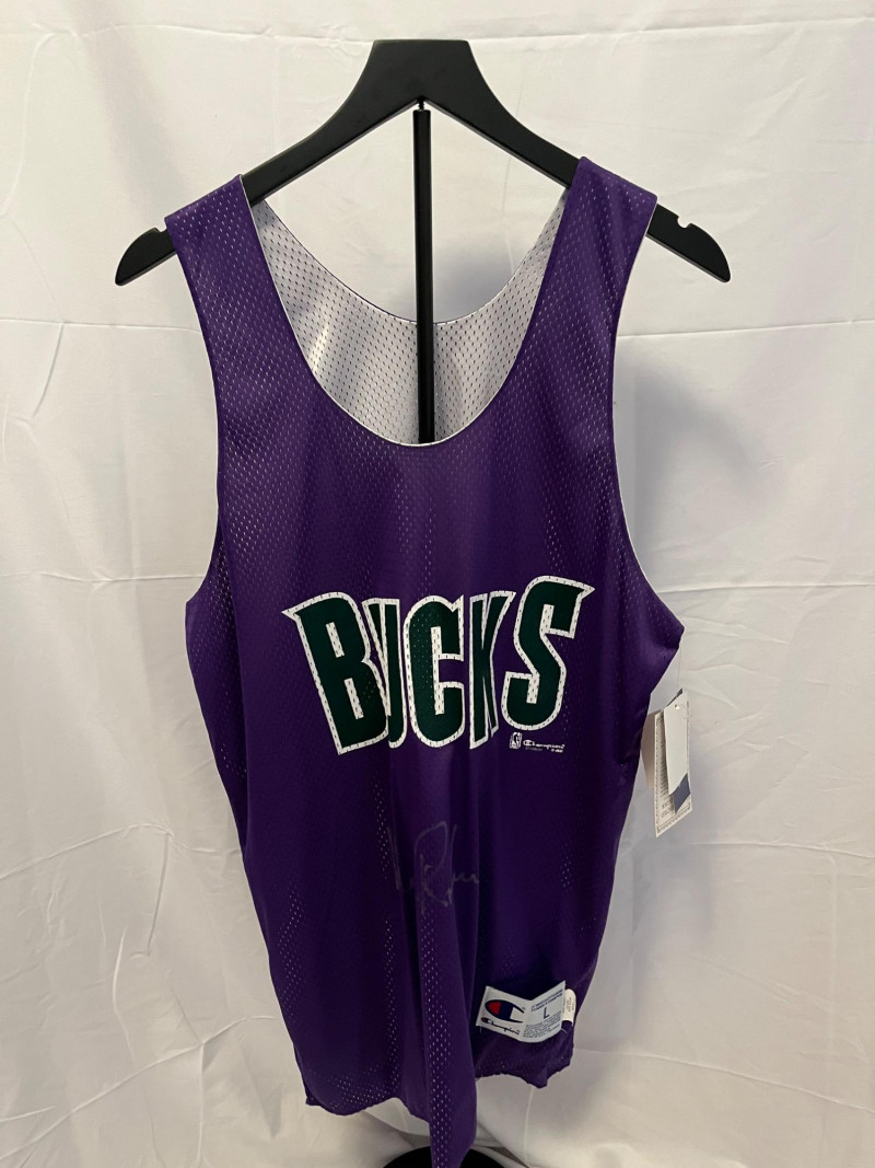 Glenn Robinson Autographed Vintage Jersey Vintage Champion Jersey Size Large Large Autograph Under MIL Bucks Logo On Front Of Jersey (Silver Ink Auto) NBA Licensed