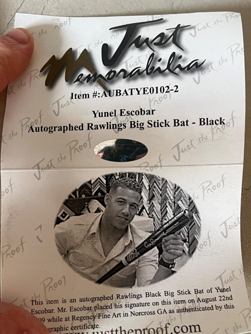 Yunel Escobar Autographed & Authenticated Bat Authenticated by Just Memorabilia Official Rawlings Big Stick Wooden 32" Bat