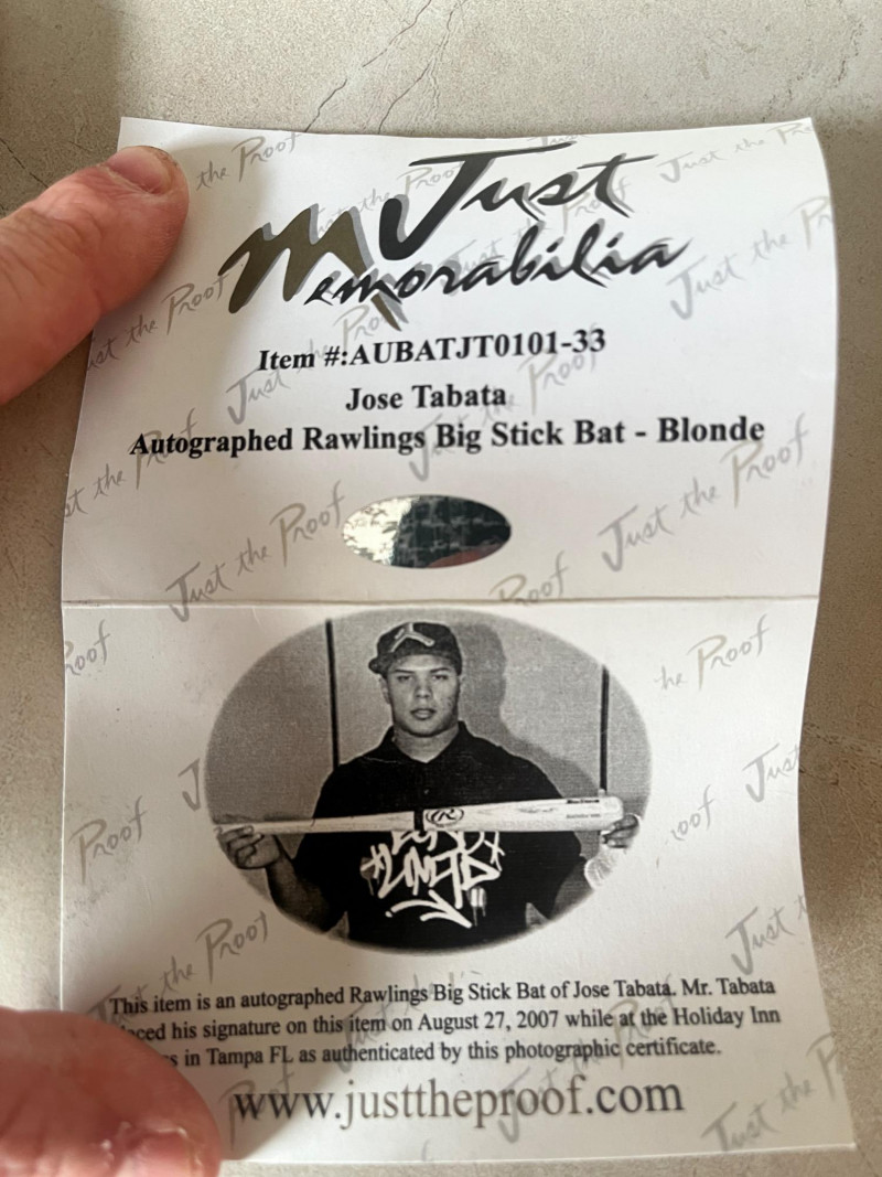 Jose Tabata Autographed & Authenticated Bat Authenticated by Just Memorabilia Official Rawlings 32" Big Stick Bat