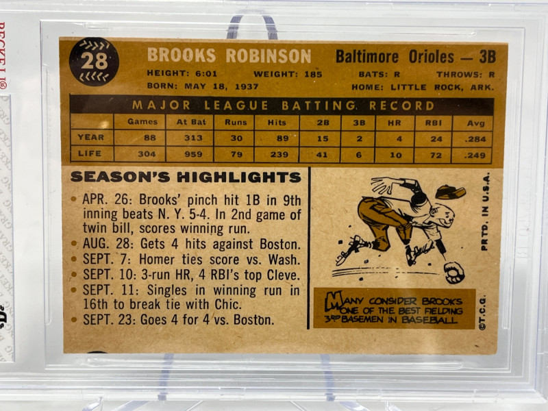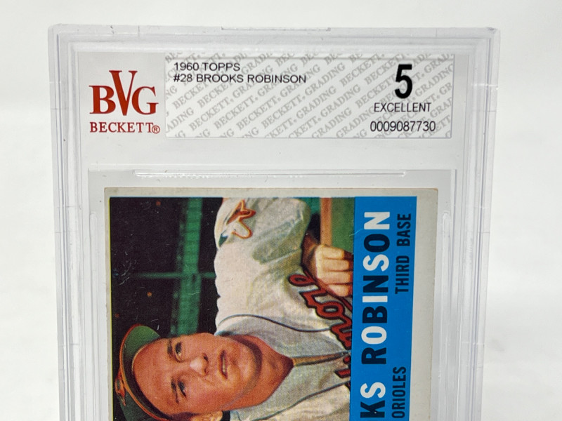 Beckett Graded 1960 Topps Beckett Graded 1960 Topps Brooks Robinson "The Human Vacuum Cleaner" Beckett Vintage Grading: 5 (EX) Card No. 28