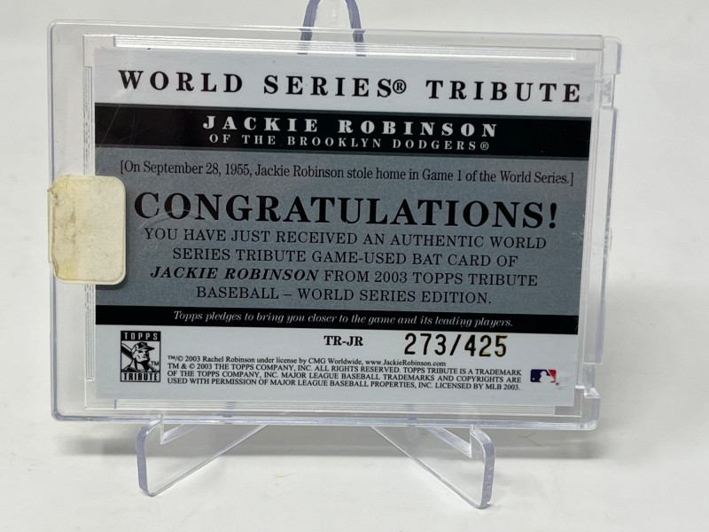 Jackie Robinson Game Used Bat Card 2003 Topps Tribute 1995 World Series Tribute Serial Numbered 273/425 Mint+